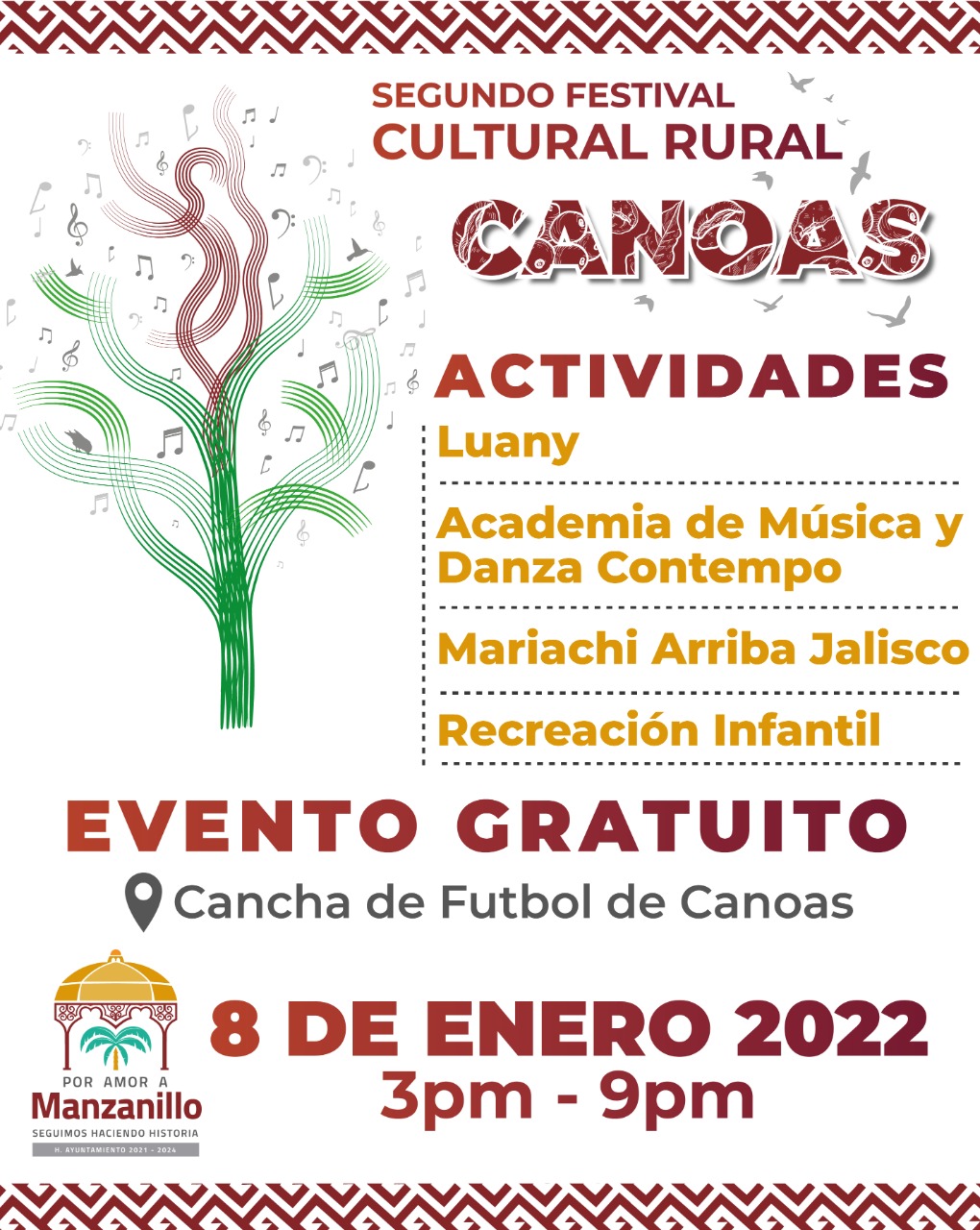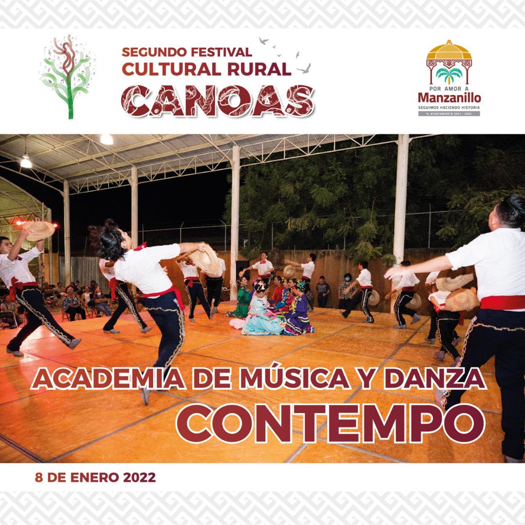 Con el objetivo de acercar las actividades artísticas y culturales a todas y todos los manzanillenses, el Ayuntamiento de Manzanillo mantiene la programación de estas actividades que promueven la sana convivencia y fomentan la cultura de paz entre la comunidad. Tal y como este sábado pasará a través del Segundo Festival Cultural Rural en la comunidad de Canoas, que sirve además para reactivar el aspecto económico de las comunidades del norte de Manzanillo.