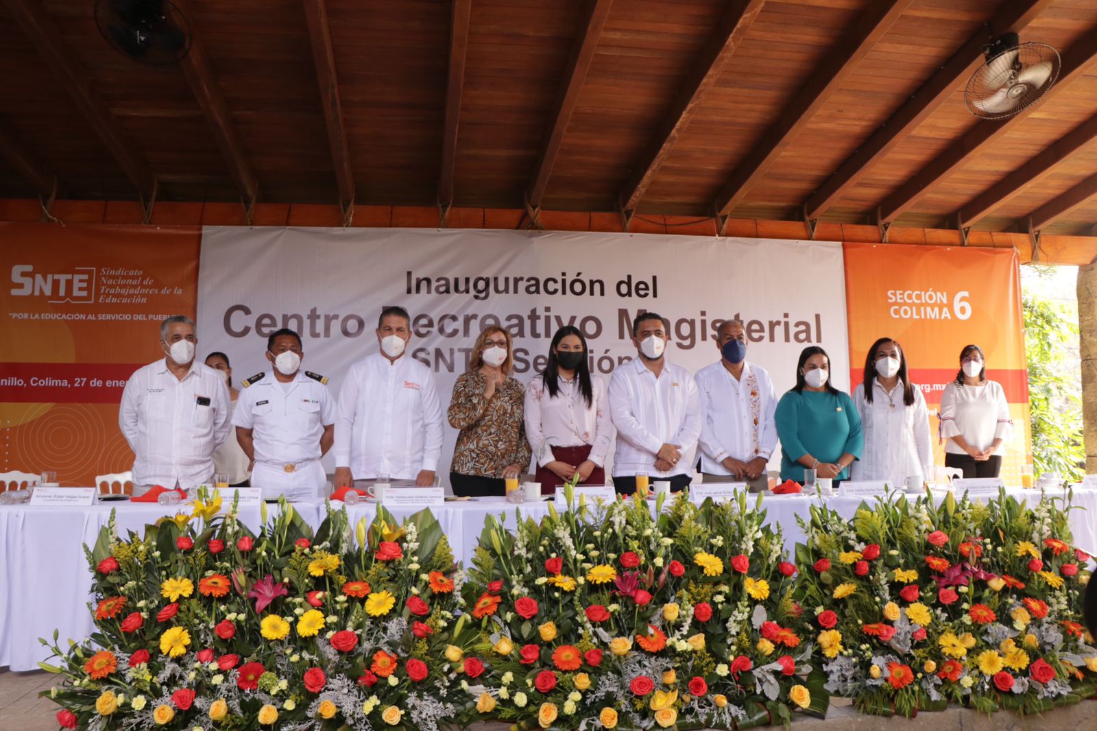 En la inauguración del centro recreativo de Manzanillo, José Jaime Núñez Murguía, secretario general de la Sección 6 del SNTE, reconoció y agradeció a la gobernadora por su intervención ante el Gobierno de México, para que Colima fuera el primer estado donde se aplicara el refuerzo de la vacuna contra el Covid-19 a trabajadores del sector educativo y le solicitó apoyo para atender sus diversas necesidades.