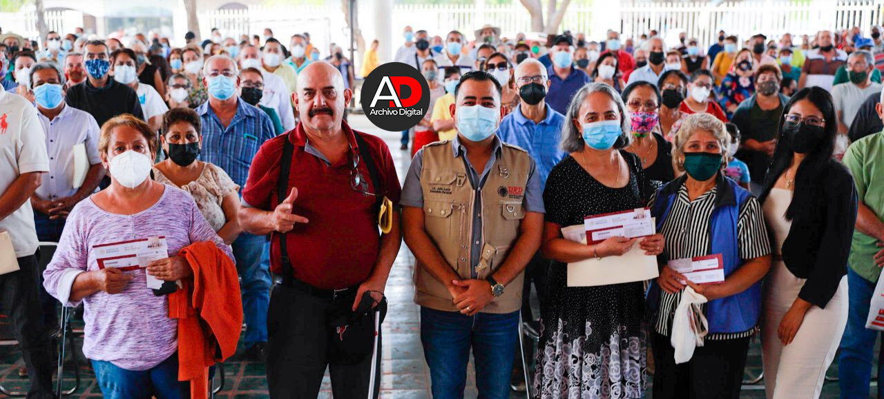 El Delegado de Programas para el Desarrollo en Colima, Julio León Trujillo, encabezó esta mañana el acto de entrega de tarjetas bancarias a 647 personas adultas mayores de Villa de Álvarez, mismas que reciben la Pensión para el Bienestar del Gobierno de México.