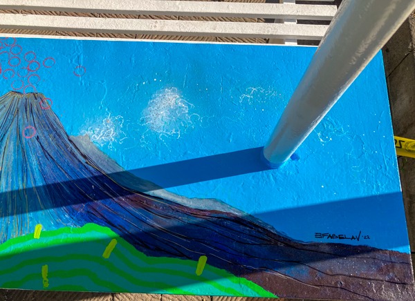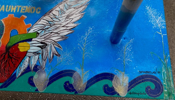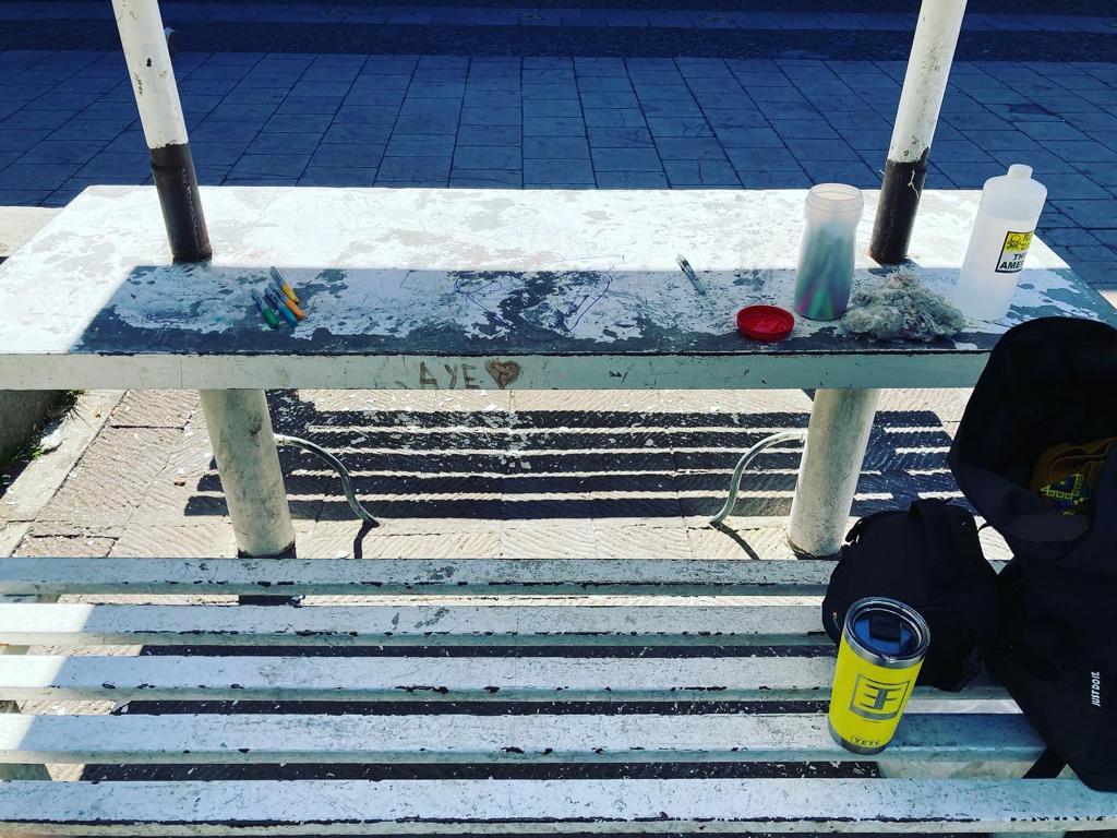 Artista Visual embellece con su obra mesas del jardín principal de Cuauhtémoc