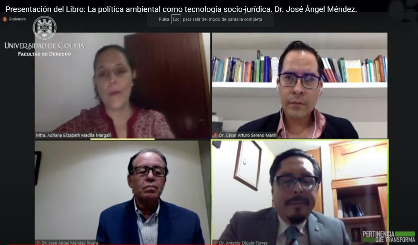 En días pasados, en la Facultad de Derecho de la Universidad de Colima se presentó el libro “La política ambiental como tecnología socio-jurídica. Un modelo de política criminal ambiental como política pública en áreas naturales protegidas: caso reservas de la biósfera”, del profesor de esa misma facultad, José Ángel Méndez Rivera.