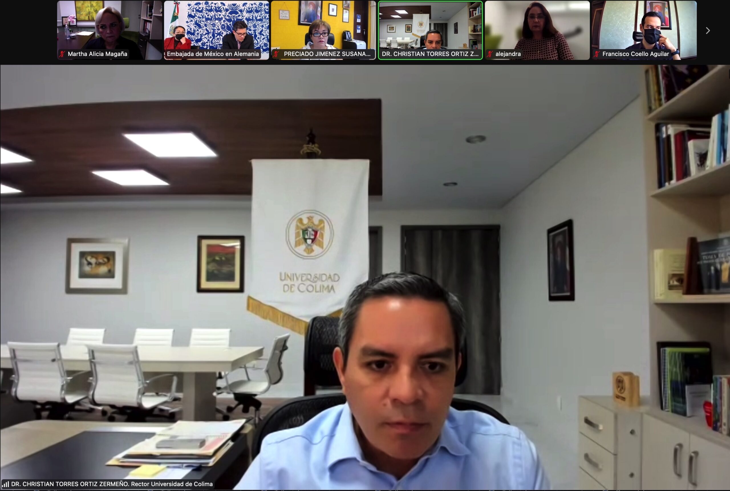Este jueves, de manera virtual, se llevó a cabo una reunión de trabajo entre el rector de la Universidad de Colima, Dr. Christian Jorge Torres Ortiz Zermeño y el embajador de México en Alemania, Mtro. Francisco José Quiroga Fernández, para darle seguimiento y materializar ideas, iniciativas y proyectos en los que la casa de estudios y la embajada puedan colaborar y apoyar la relación bilateral de México con ese país europeo.