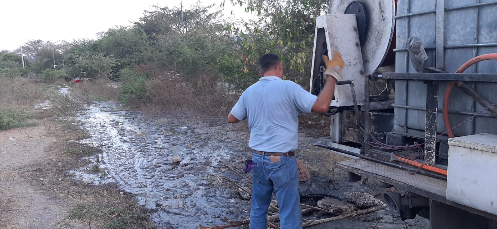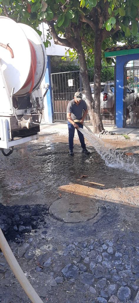 De primera instancia, se atendió el problema persistente en la calle bahía de Manzanillo entre las calles Copalli y la Av. Akollimán en la Colonia Los Almendros de Villa de Álvarez. Cabe señalar que esta problemática ya había sido atendida desde el pasado domingo, sin embargo, las necesidades técnicas se incrementaron por lo que fue necesaria la utilización del camión hidro que se encontraba en mantenimiento esta semana.