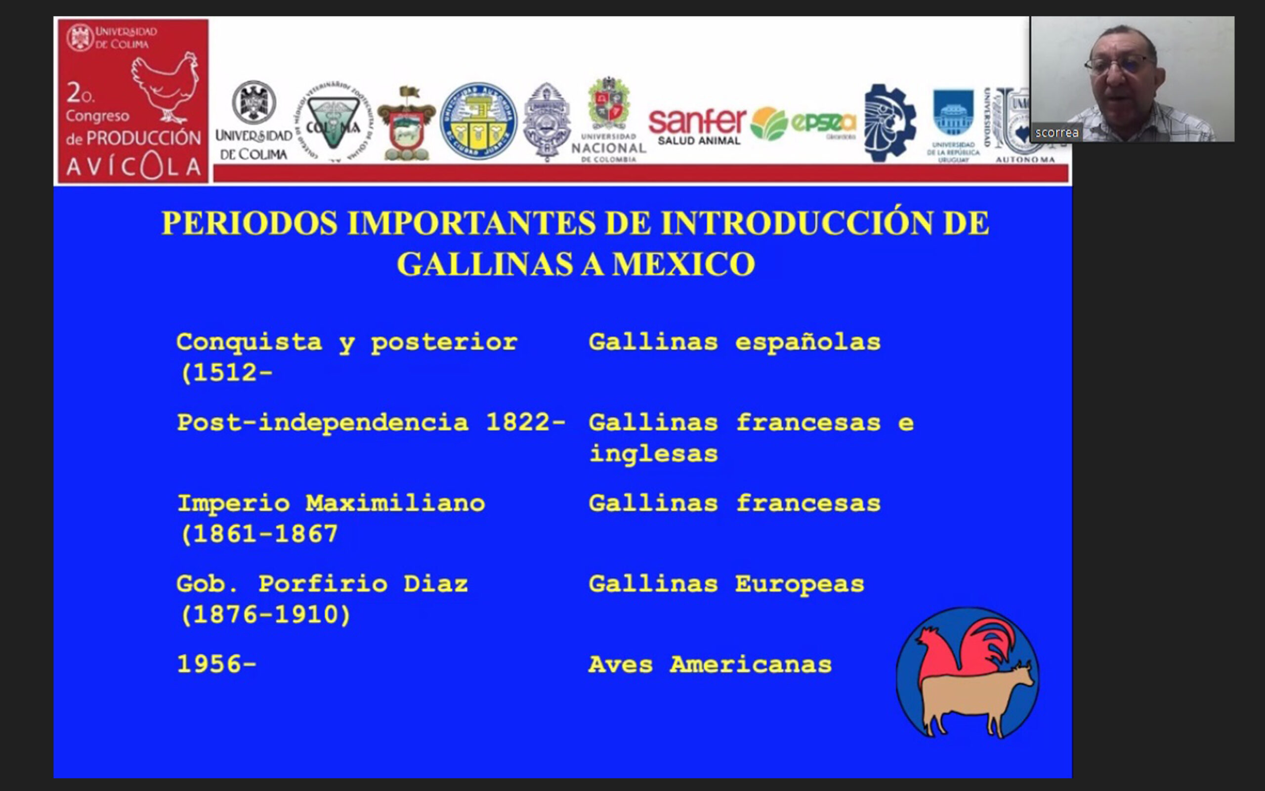 Con la conferencia “Genealogía y mejoramiento genético de las gallinas”, impartida por el Dr. José Candelario Segura Correa, del Campus de Ciencias Agropecuarias de la Universidad Autónoma de Yucatán (UAY), inició de manera virtual el segundo Congreso de Producción Avícola organizado por la Facultad de Medicina Veterinaria y Zootecnia (FMVZ) de la Universidad de Colima, campus Tecomán.