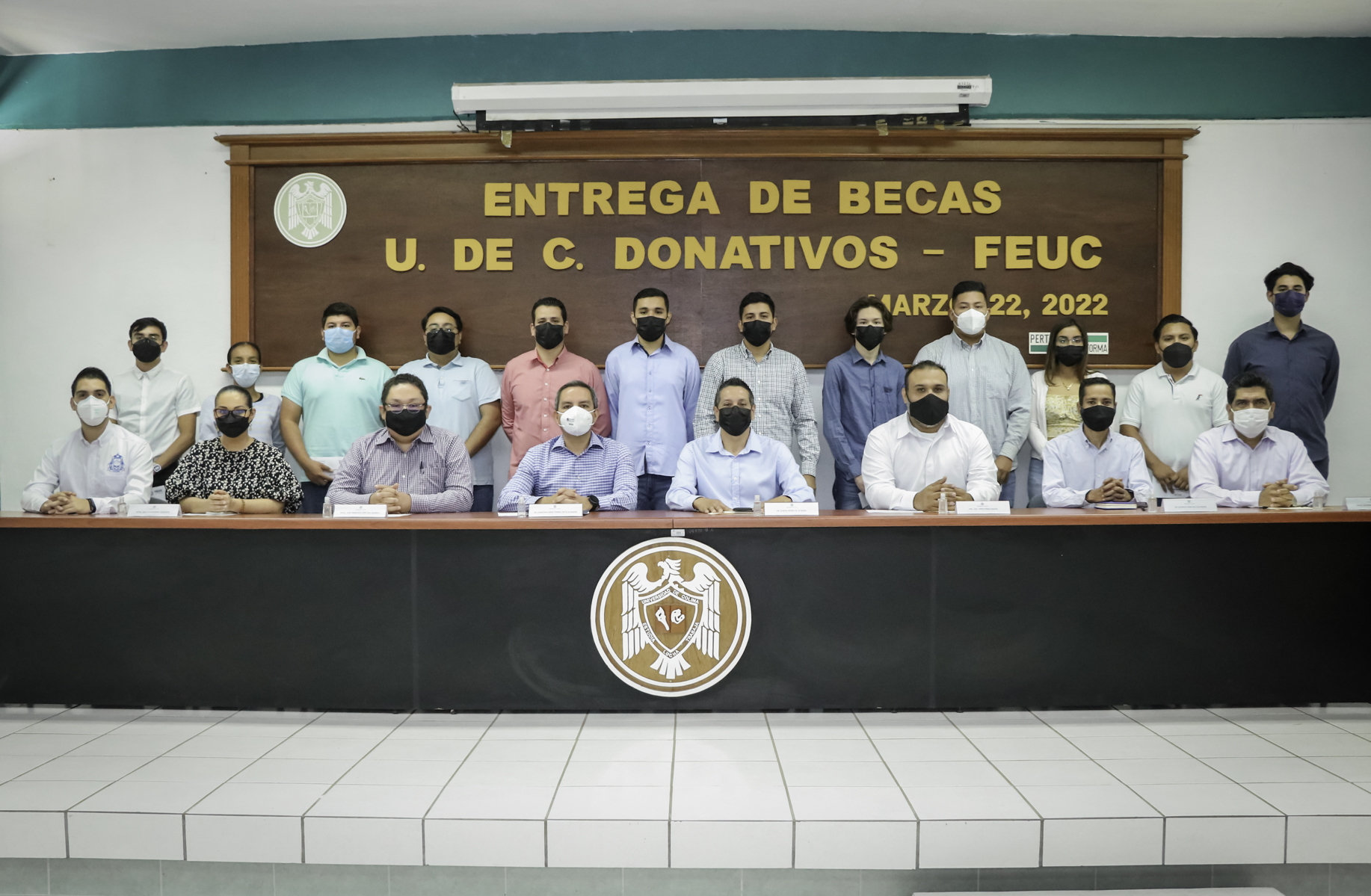 La mañana de este martes, en evento realizado en el campus Coquimatlán, diez alumnos y dos alumnas de la carrera de Ingeniero Topógrafo Geomático de la Facultad de Ingeniería Civil recibieron la Beca UdeC Donativos-FEUC gracias al apoyo de docentes y egresados de esta carrera, así como del Colegio de Ingenieros Topógrafos Geomáticos y Agrimensores de Colima y de la Asociación de Egresados de la carrera de Ingeniero Topógrafo.