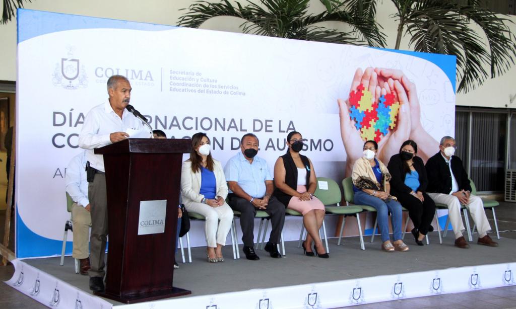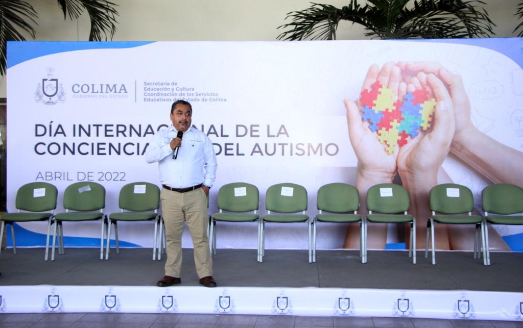 En evento desarrollado en la explanada de la dependencia estatal, el secretario de Educación y Cultura, Adolfo Núñez González, destacó que el tema del autismo es de la mayor importancia para el desarrollo y bienestar de las niñas, niños y adolescentes, y es necesario que la comunidad educativa tenga todos los conocimientos sobre esta situación, encaminados a tener mayor certeza en la comprensión y atención de quienes viven esta realidad.