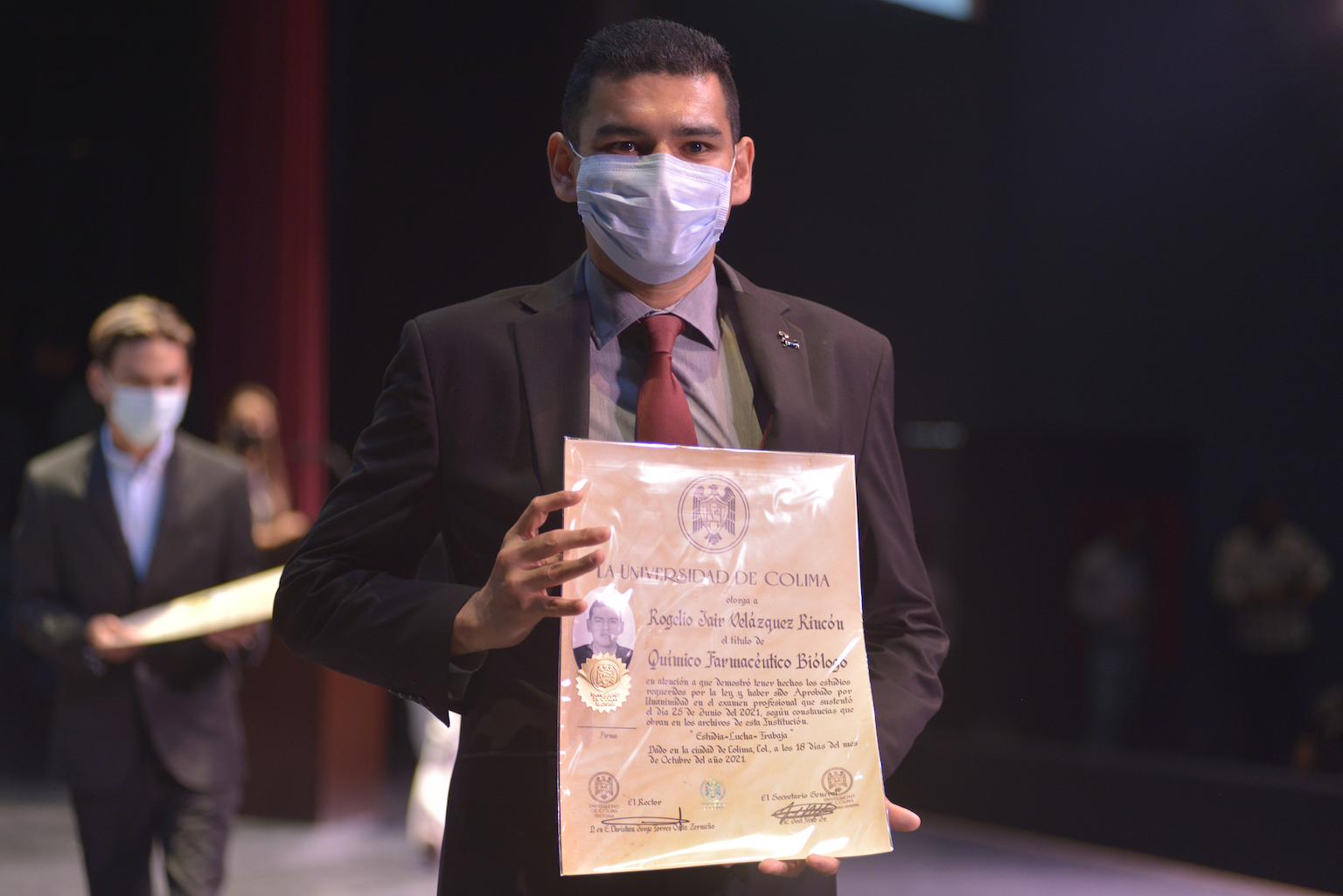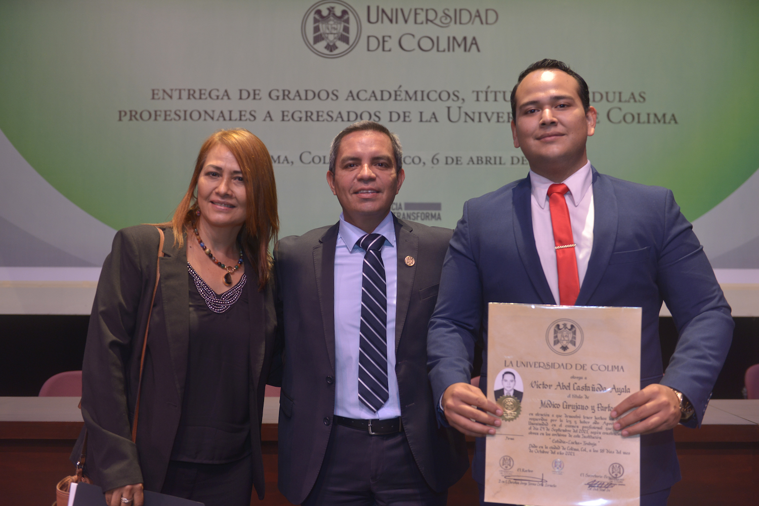 “En la Universidad de Colima, junto con todos ustedes -continuó- supimos afrontar este gran reto realizando las adecuaciones necesarias; de hecho, 228 de quienes reciben el documento este año realizaron su toma de protesta a distancia, gracias a la conversión digital que emprendimos, la cual nos permitió continuar con la atención a los servicios educativos”.
