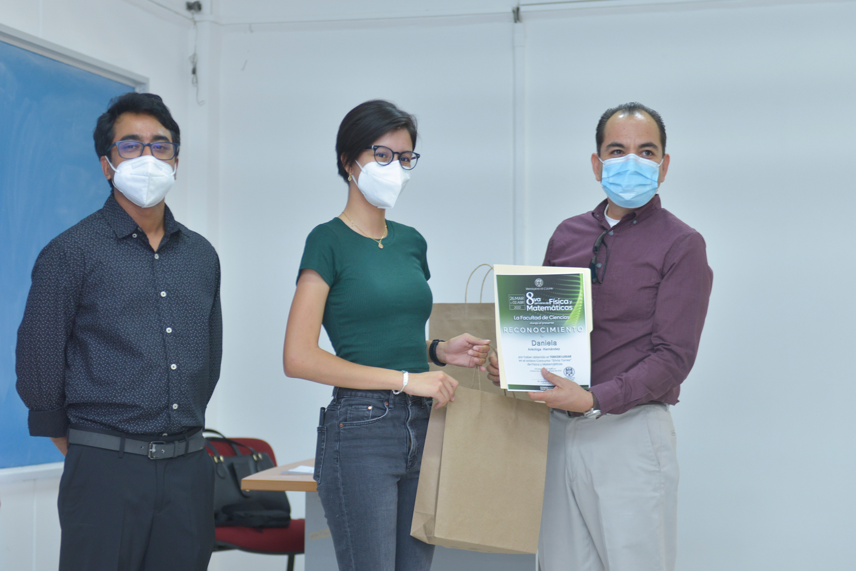 Los estudiantes Jorge Alejandro González Díaz, del Tecnológico de Monterrey, Campus Colima; Daniel Alejandro Aranda Zamora, del Bachillerato No. 4 y Daniela Aréchiga Hernández, del Colegio Campo verde, resultaron ganadores del primero, segundo y tercer lugar respectivamente, del concurso de Física y Matemáticas “Silvia Torres” organizado por la Facultad de Ciencias de la Universidad de Colima.