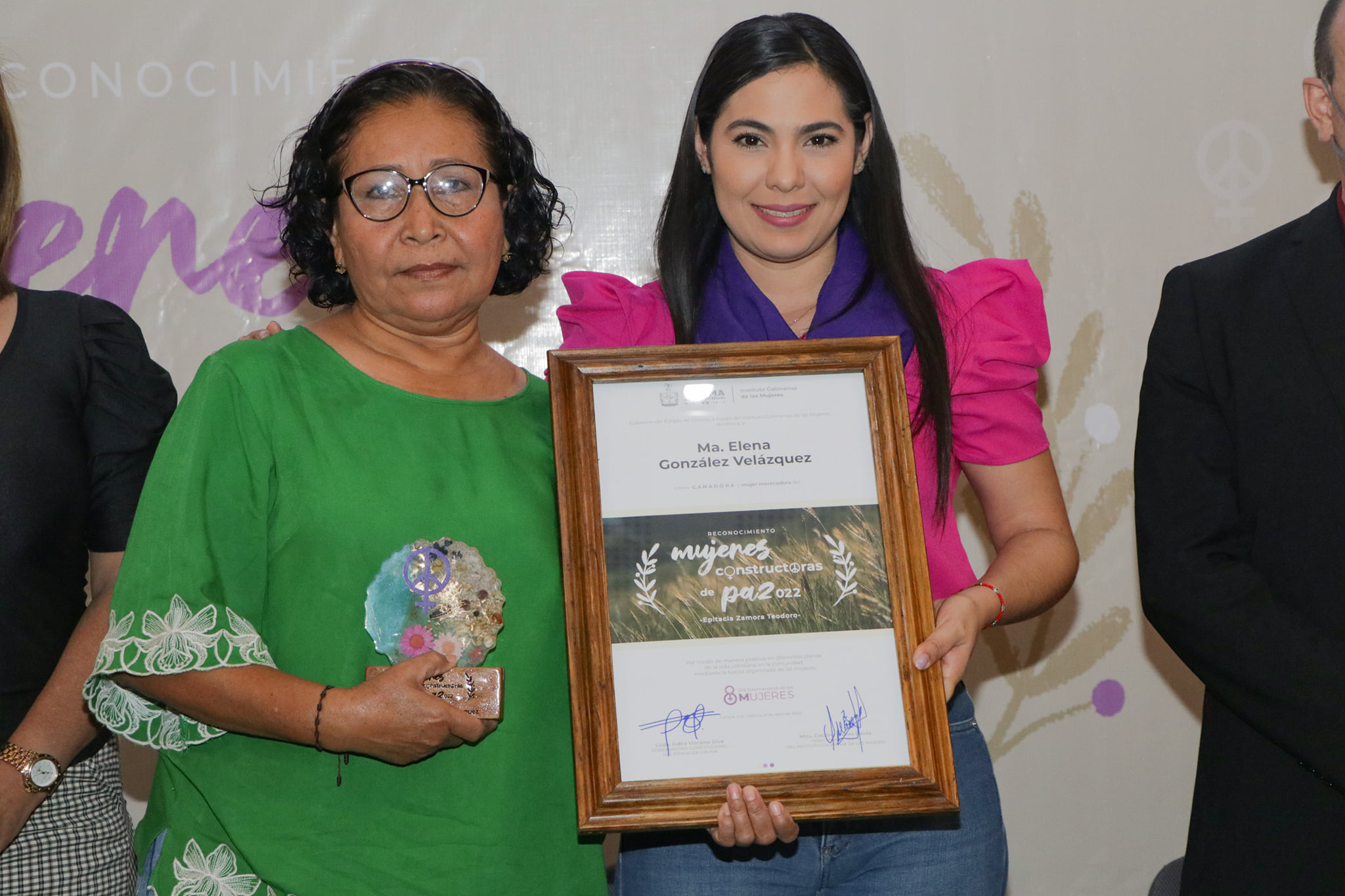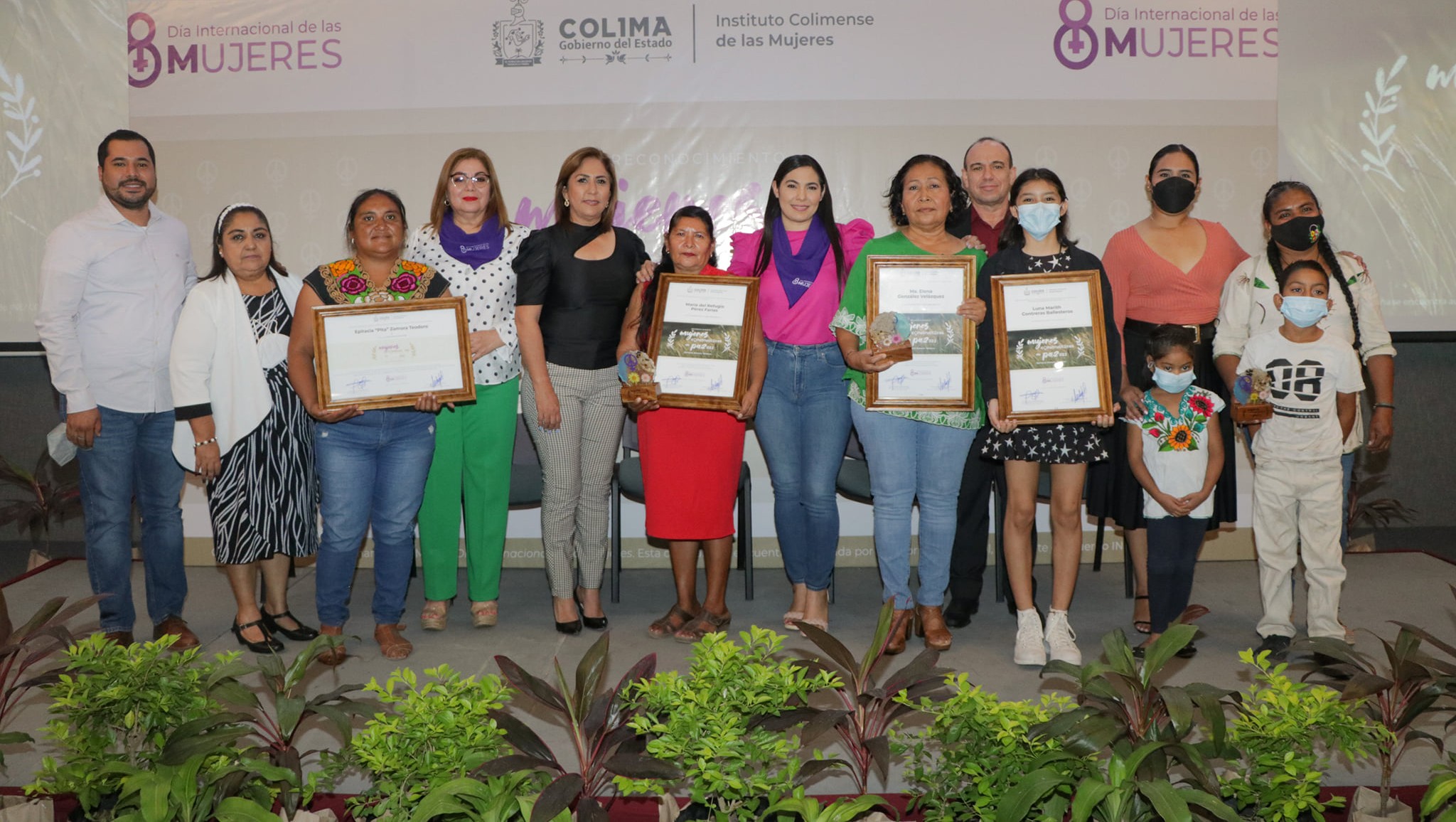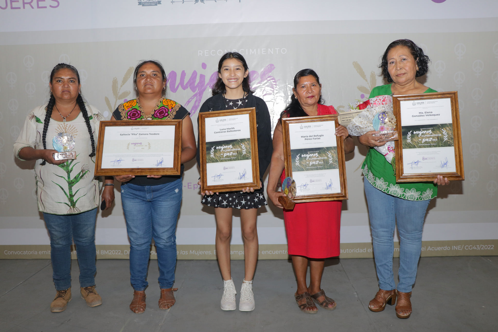 Las galardonadas fueron María del Refugio Pérez Farías, comisaria municipal de La Nogalera (municipio de Comala), quien ejerce como partera, promotora educativa, emprendedora gastronómica y defensora de los derechos de las mujeres; y Ma. Elena González Velázquez, trabajadora social que desde los 17 años impulsa la organización comunitaria y el desarrollo familiar, en temas como alimentación, salud, educación, vivienda y economía, y haciendo intervenciones en las comunidades más aisladas de Colima.