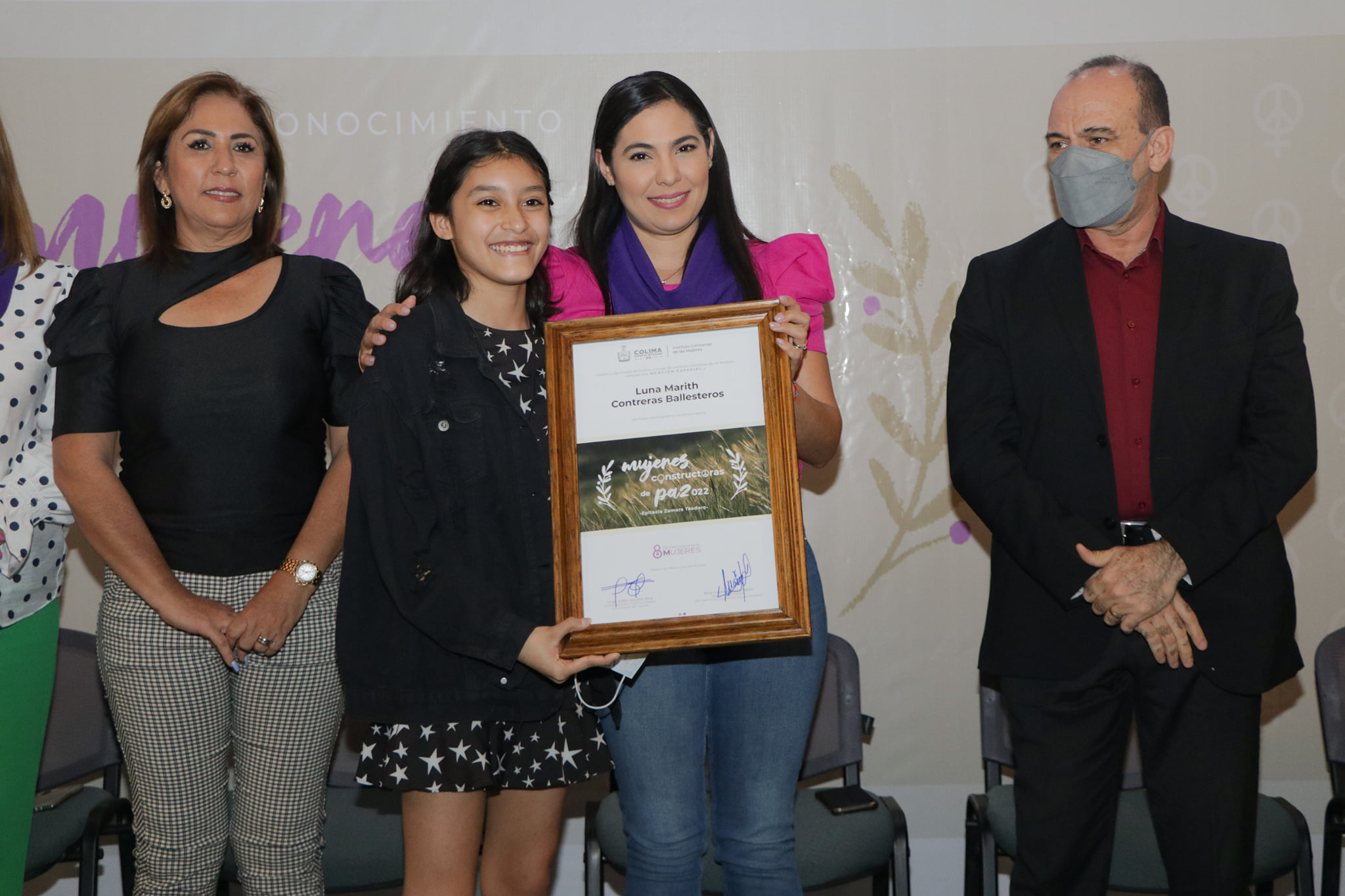 Se otorgó mención especial a Luna Marith Contreras Ballesteros, de 14 años de edad, quien de manera autogestiva fomenta la lectura y rescata la tradición oral de su municipio Coquimatlán, y un reconocimiento post mortem a Epitacia Zamora, que recibieron sus hijas, Carmen e Irma Guzmán Zamora.