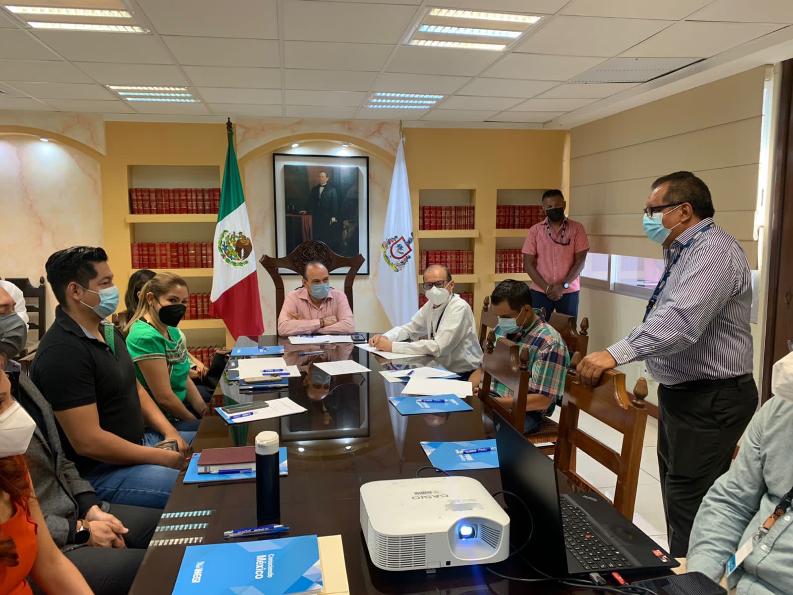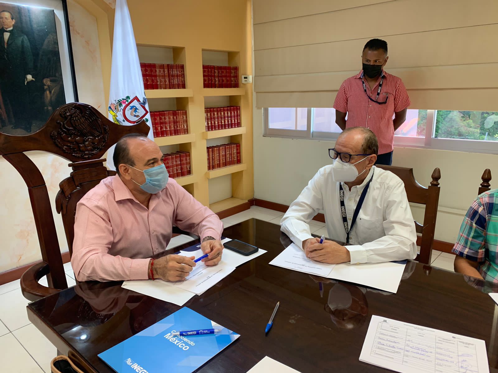 El Magistrado presidente del Supremo Tribunal del Justicia, Bernardo Alfredo Salazar Santana se reunió con el Coordinador Estatal del Instituto Nacional de Estadística y Geografía (INEGI), Octavio Grageda Guzmán, quien dio el arranque oficial del Censo Nacional de Impartición de Justicia 2022 el cual se estará realizando hasta el mes de julio.