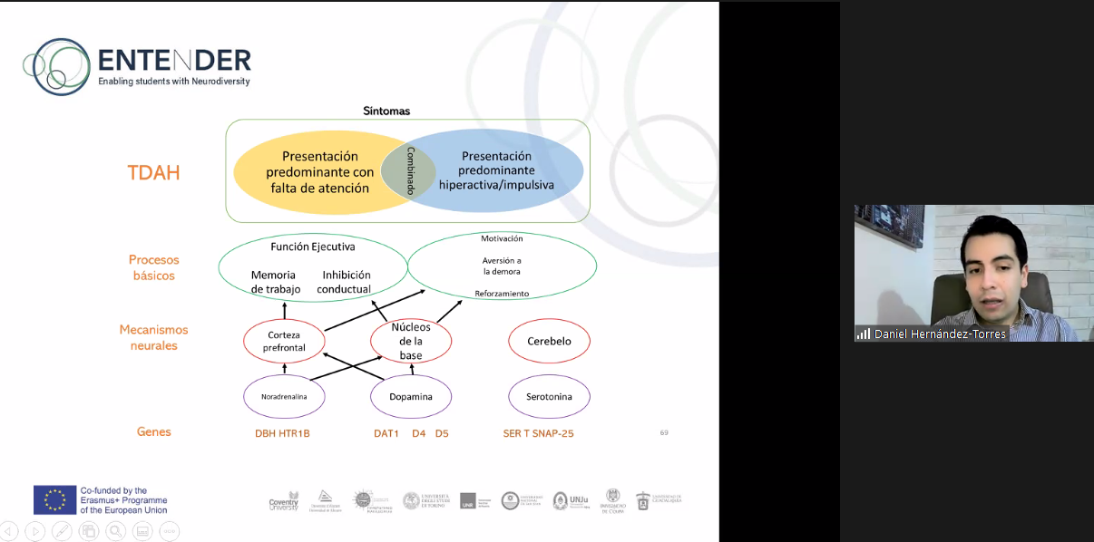 En el ciclo de conferencias, realizado de manera virtual, participaron especialistas de Argentina y México hablando sobre los siguientes temas: “Métodos de aprendizaje para estudiantes universitarios en el espectro autista (Dra. Rebeca Rosas Hernández); “Discalculia: cuando 1+1 no son igual a 2” (Mtra. Esther Alejandra Ochoa García), “Cognición Social en el TDAH” (Dr. Daniel Hernández Torres), “Implementación de un modelo preclínico de esquizofrenia/autismo” (Dr. Diego Alexander González Franco) y “Estrategias para la inclusión educativa en la universidad” (Lic. Miriam Bidyeran y Lic. María Virginia Ferreyra).