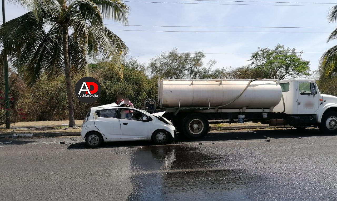 En un fuerte accidente registrado la tarde de este lunes, el conductor de un vehículo compacto perdió la vida al impactarse en la parte posterior de una pipa de agua que se encontraba regando el camellón sobre los carriles centrales del Tercer Anillo Periférico, casi frente a la plaza comercial “Sendera” en la ciudad de Villa de Álvarez.