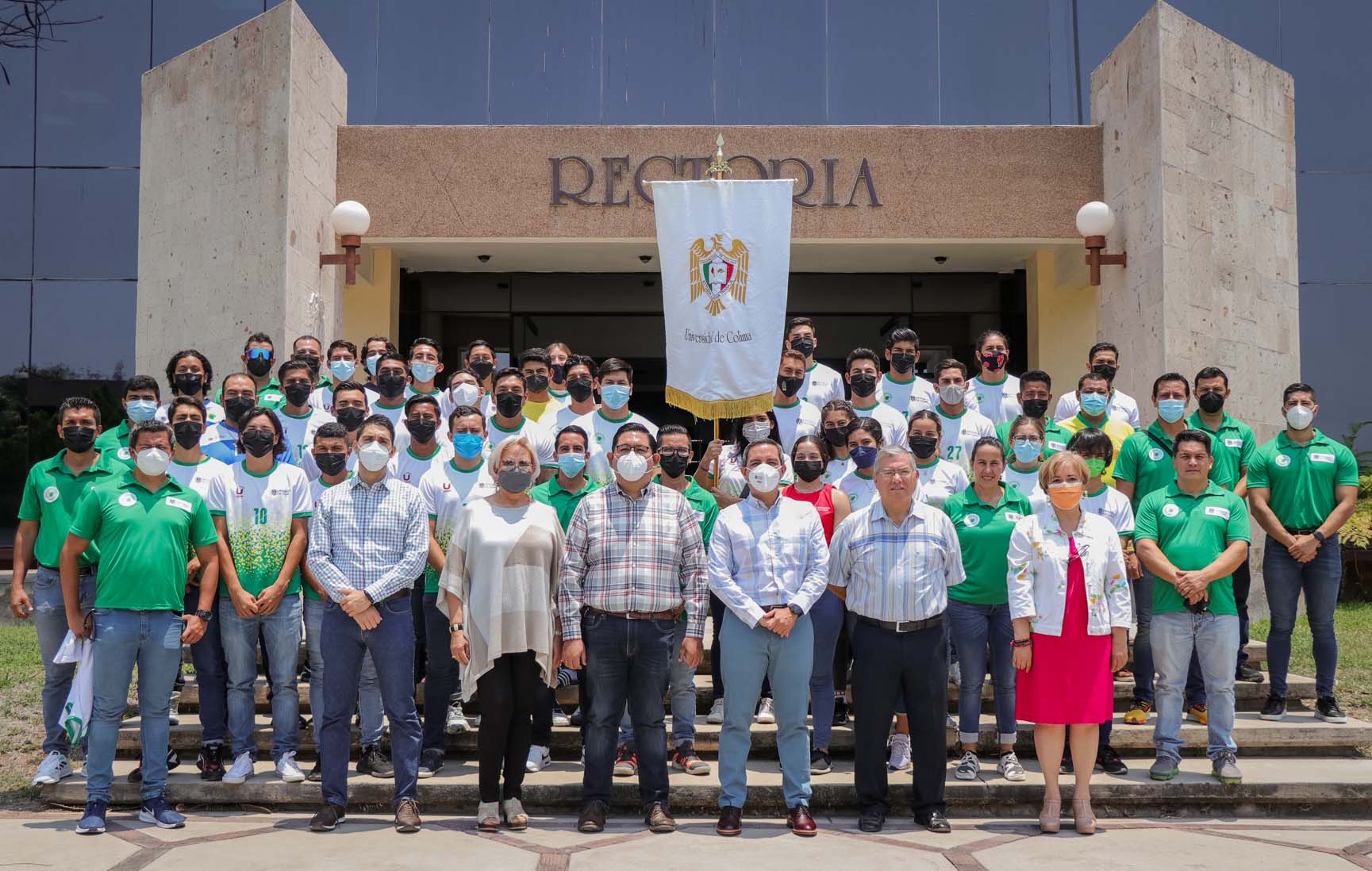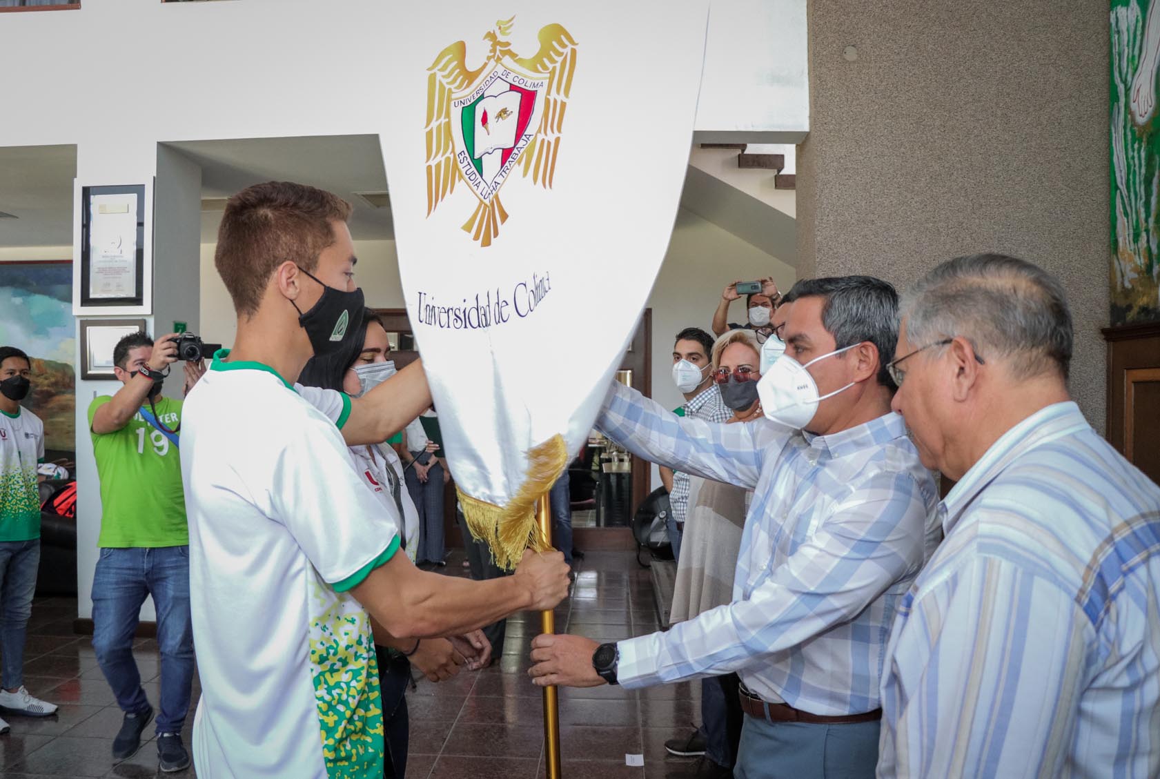Este viernes, en el vestíbulo de rectoría, Christian Jorge Torres Ortiz Zermeño, rector de la Universidad de Colima, abanderó a los 57 estudiantes que competirán en la Universiada Nacional, a celebrarse del 12 de mayo al 5 de junio en la Universidad Autónoma de Juárez.