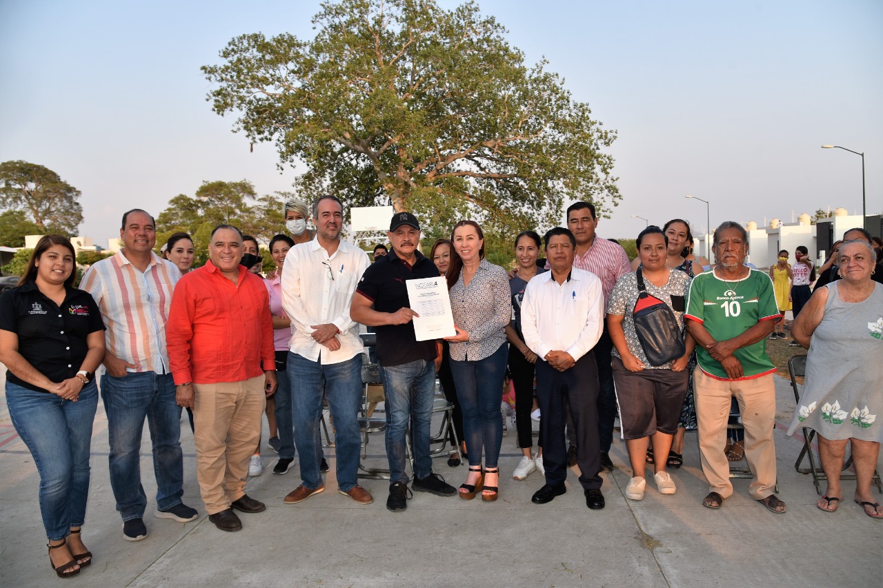 “Al quedar a nombre del Ayuntamiento, quiere decir que estas áreas de cesión son de todas y todos ustedes”, les dijo la Presidenta a los colonos, reunidos en la cancha de ese lugar, ubicado al poniente de la Ciudad.