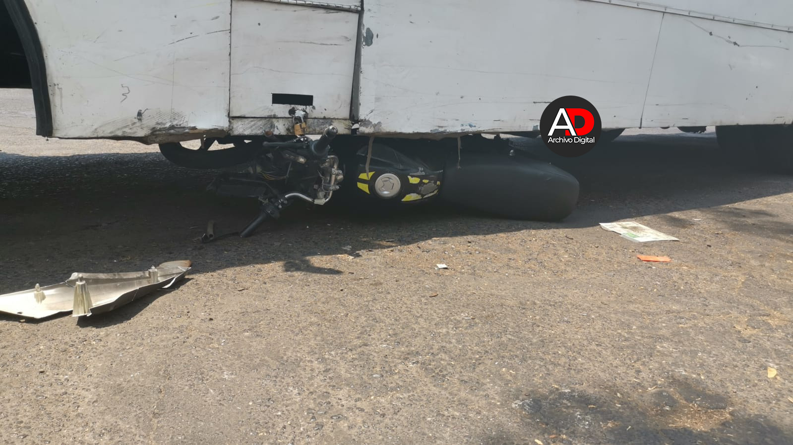 El conductor del autobús se dio a la fuga rumbo al Colegio Fray Pedro, fue perseguido por elementos policiacos pero escapó mientras que el motociclista se encuentra lesionado, en código amarillo.