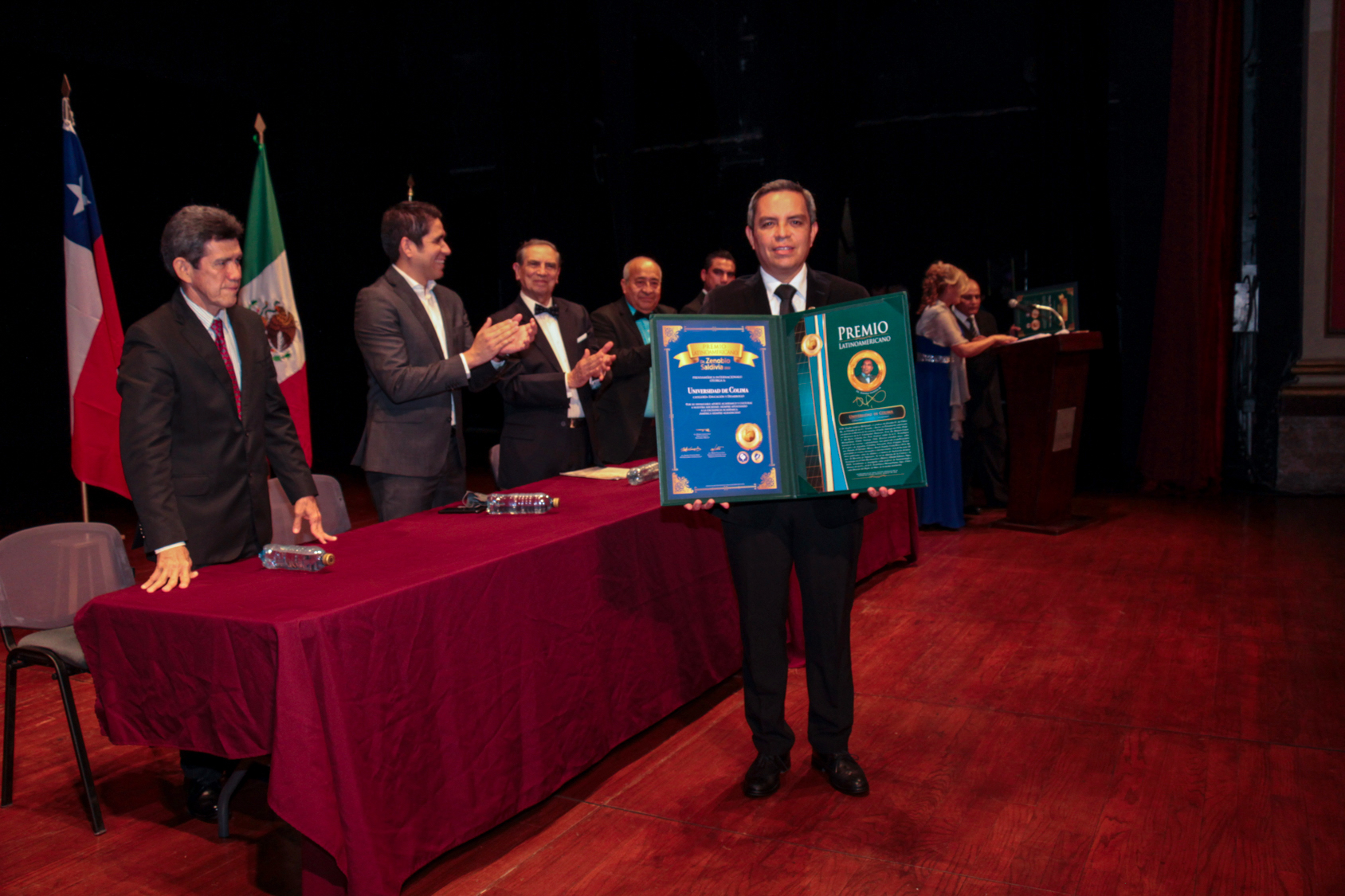 Este sábado por la noche la Universidad de Colima, en manos de su rector Christian Jorge Torres Ortiz Zermeño, recibió el Premio Latinoamericano “Dr. Zenobio Saldivia 2022”, en la categoría de Educación y Desarrollo, “por el invaluable aporte académico y cultural a nuestra sociedad, siempre apuntando a la excelencia académica”, en una ceremonia solemne realizada en el Teatro Hidalgo de la ciudad capital.