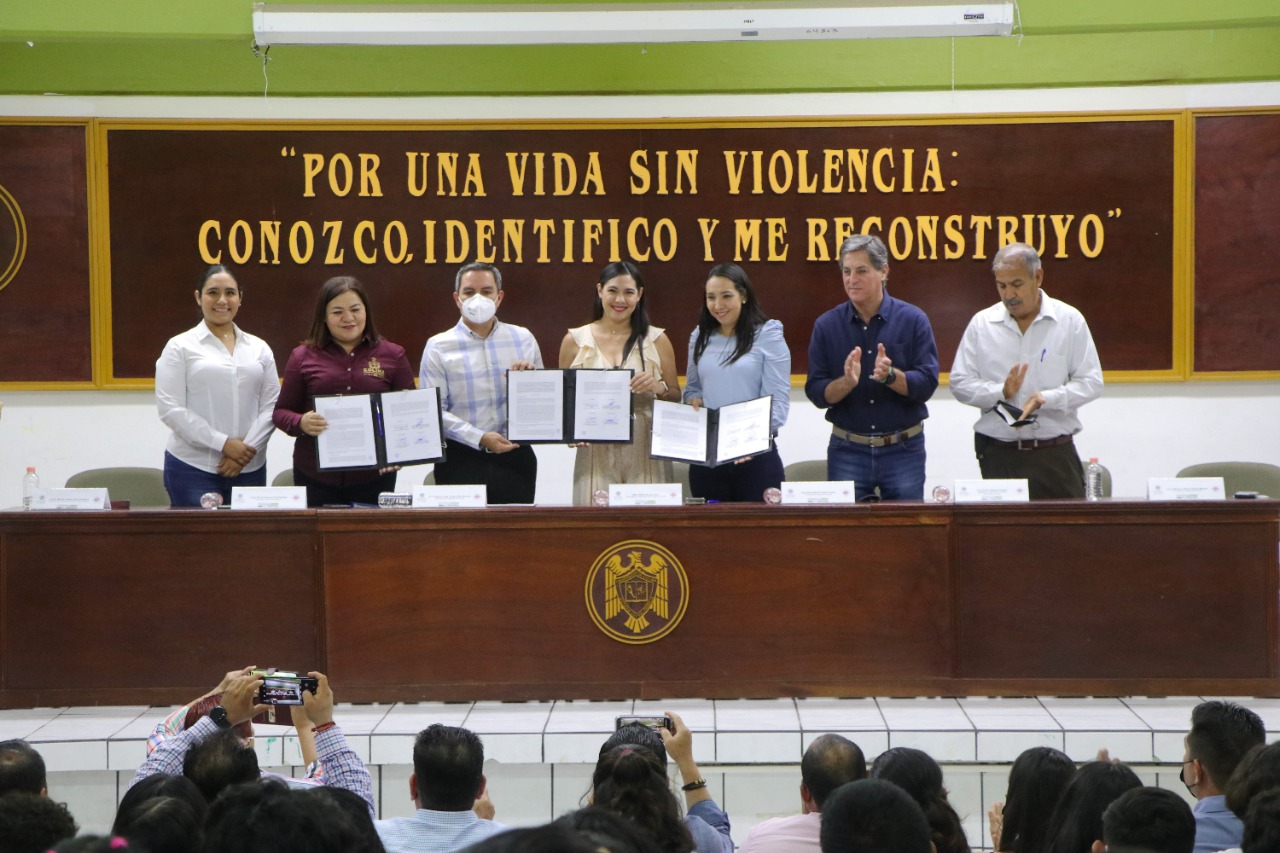 Tras atestiguar la firma del convenio de colaboración entre el rector de la UdeC, Christian Torres Ortiz Zermeño y la secretaria general de Gobierno, Ma Guadalupe Solís Ramírez, la mandataria estatal dijo a las y los estudiantes que ese programa fue pensado con mucho amor; “porque nosotros queremos hacer un gobierno que realmente avance en disminuir y eventualmente erradicar las violencias hacia las mujeres”, señaló.