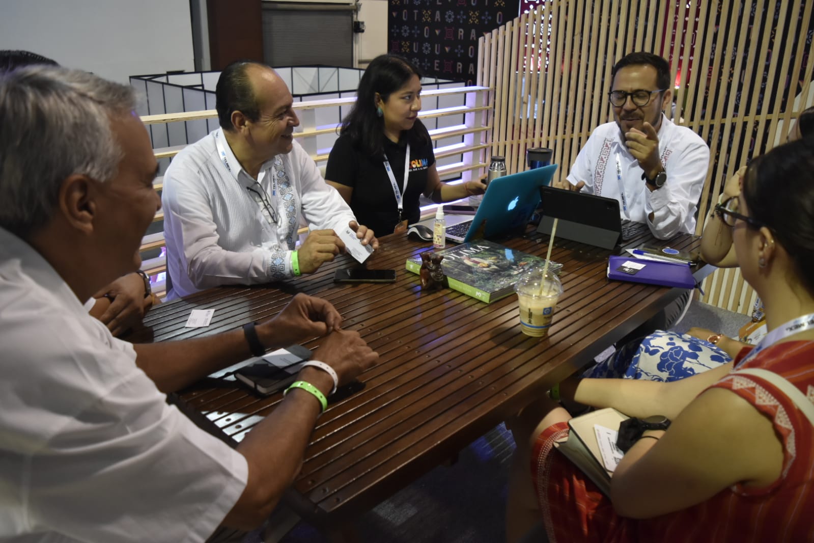 La mandataria atendió entrevistas con medios de comunicación nacionales, como El Economista, Milenio, SDP y Turístika TV, entre otros; además, encabezó diversas reuniones, donde estuvo acompañada de la secretaria general de Gobierno, Guadalupe Solís Ramírez; la secretaria de Desarrollo Económico, Rosa María Bayardo Cabrera y el subsecretario de Turismo, Jorge Padilla Castillo.