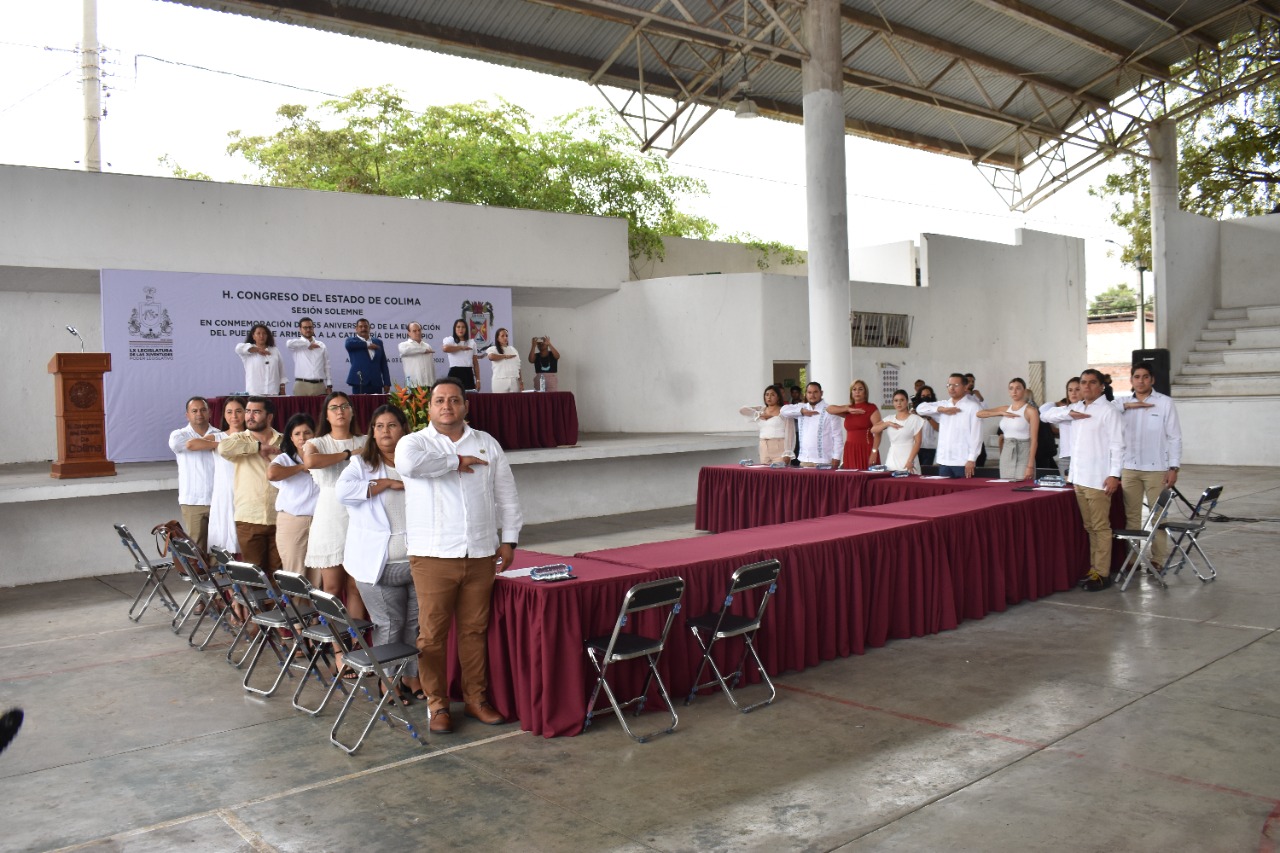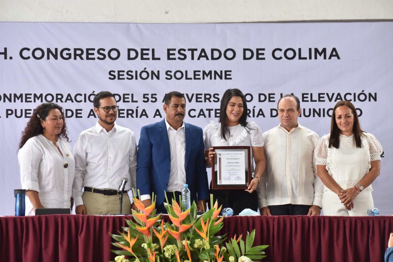De igual manera, en este evento solemne, el presidente de la Mesa Directiva del H. Congreso del Estado de Colima, diputado Rigoberto García Negrete, entregó a la alcaldesa Diana Zepeda, un reconocimiento con motivo de la elevación de este territorio a la categoría de Municipio.