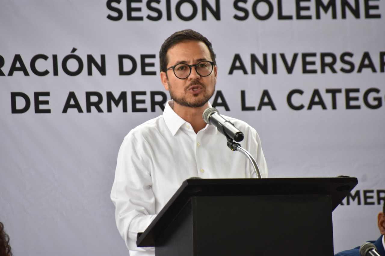 Por su parte, el cronista municipal Miguel Chávez Michel, dio lectura a la reseña histórica de la fundación de Armería y su elevación a la categoría de Municipio. Expresó su gratitud a las y los diputados de la actual legislatura por la aprobación y celebración de esta sesión solemne y, además, dijo que quienes viven en Armería, deben tener el compromiso de conservar al municipio como tierra fértil y como el territorio más plural del estado.