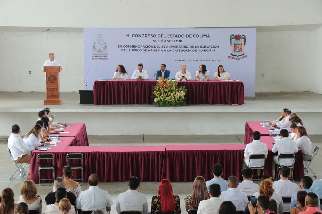 En sesión solemne, el H. Congreso del Estado de Colima celebró el 55 aniversario de la elevación del pueblo de Armería a la categoría de Municipio, evento que se realizó en la cabecera municipal de dicho territorio, contando con la presencia de la presidenta municipal Diana Xally Yael Zepeda Figueroa e integrantes del H. Cabildo.