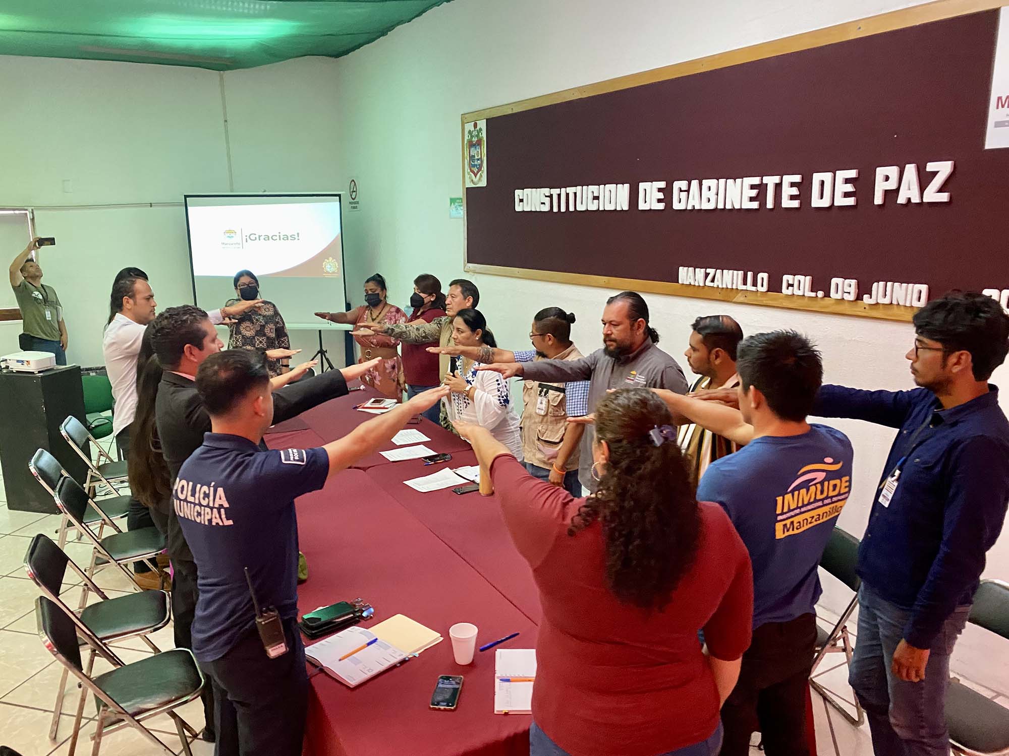 La presidenta municipal de Manzanillo, Griselda Martínez encabezó la ceremonia de constitución del Gabinete de Construcción de Paz, integrada por servidoras y servidores públicos de la administración, cuyo objetivo principal será el de generar mejores condiciones de vida a la población a través de macro intervenciones en colonias en las que se han identificado mayores índices delictivos; a las que se llevarán acciones sociales para revertir su problemática, generar conciencia, promover y fomentar valores y estilos de vida saludables.