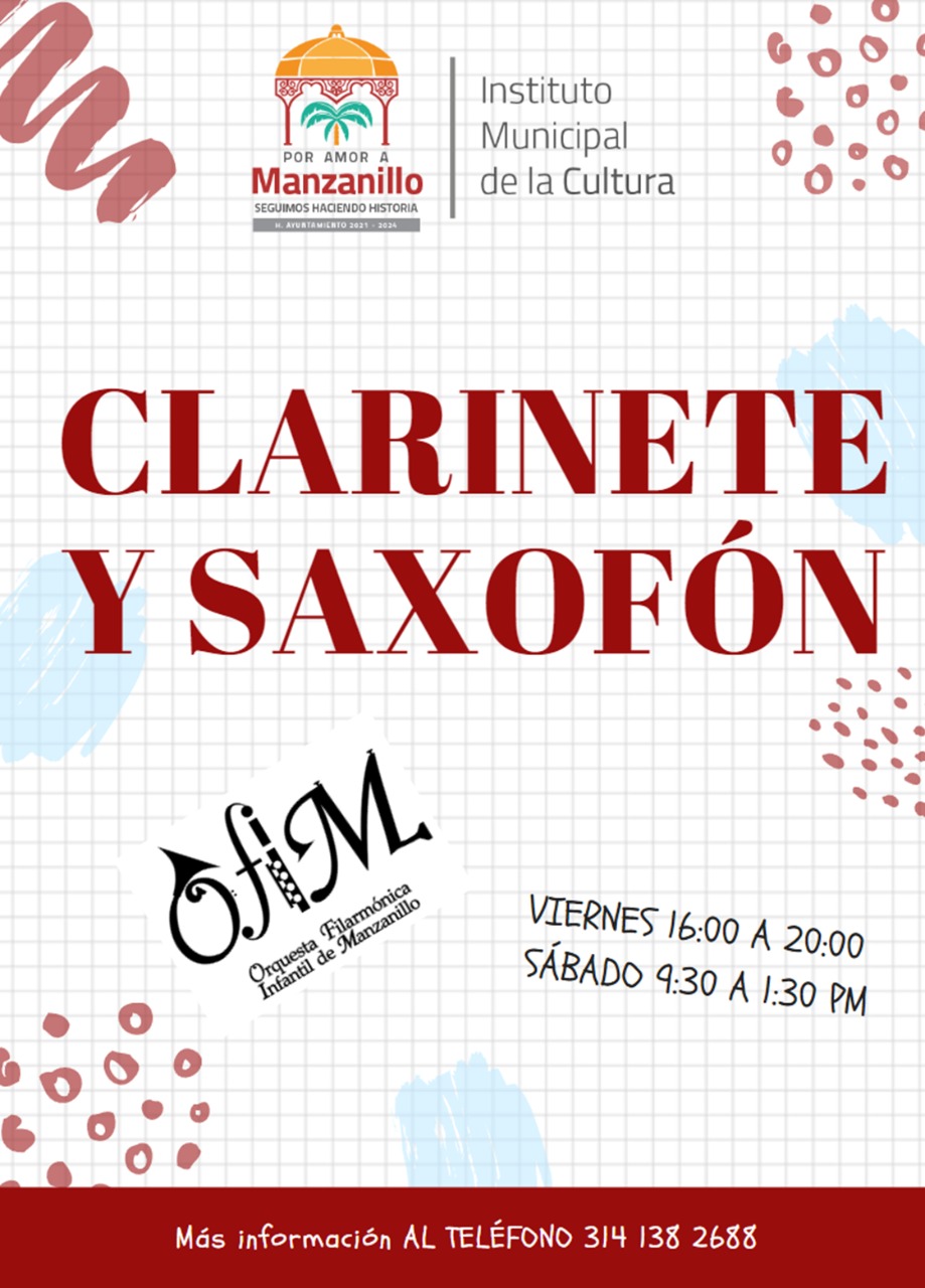 Los viernes de 4 de la tarde a 8 de la noche y los sábados de 9:30 de la mañana a 1:30 de la tarde, como parte de la Orquesta Filarmónica Infantil de Manzanillo se ofrecen clases de clarinete, saxofón y flauta transversal, el Instituto Municipal de la Cultura cuenta con los instrumentos para poder practicar.