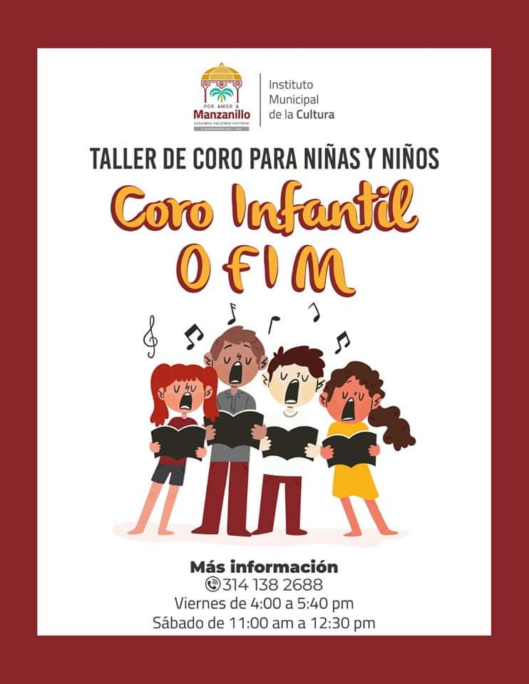 Para quien tenga interés en el canto, el Instituto Municipal de la Cultura pone a disposición el Taller de Coro para niñas y niños, para el Coro Infantil Ofim; las clases se imparten los viernes de 4 de la tarde a 5: 40 de la tarde y los sábados de 11 de la mañana a 12:30 del día.