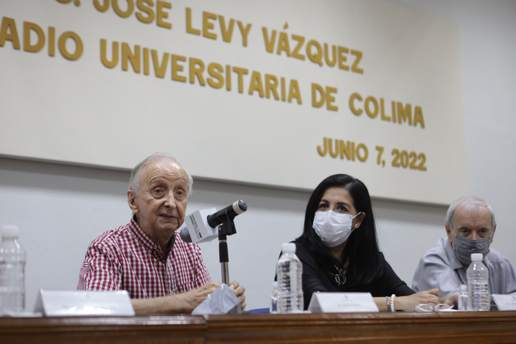 Al tomar la palabra, el homenajeado agradeció las muestras de afecto y recordó que este 2022 cumplirá 70 años de estar ligado a la radio y casi 36 años en la Universidad de Colima. Sobre Universo FM compartió que al principio se habían planteado transmitir el diez por ciento de producciones en vivo y el resto de música; sin embargo, con la colaboración de académicos, las producciones en vivo han sido mayores a las esperadas.