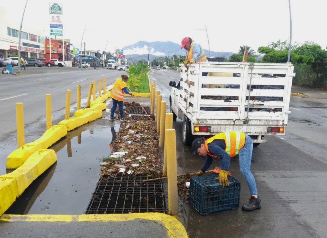 Por el paso del huracán Blas sobre el océano pacífico, el Ayuntamiento de Manzanillo a través de la dirección de Limpia y Aseo Público perteneciente a la dirección general de Servicios Públicos recorren diversos puntos de Manzanillo para la limpieza de alcantarillas y de esa forma reducir encharcamientos en vialidades que podrían ocasionar accidentes.