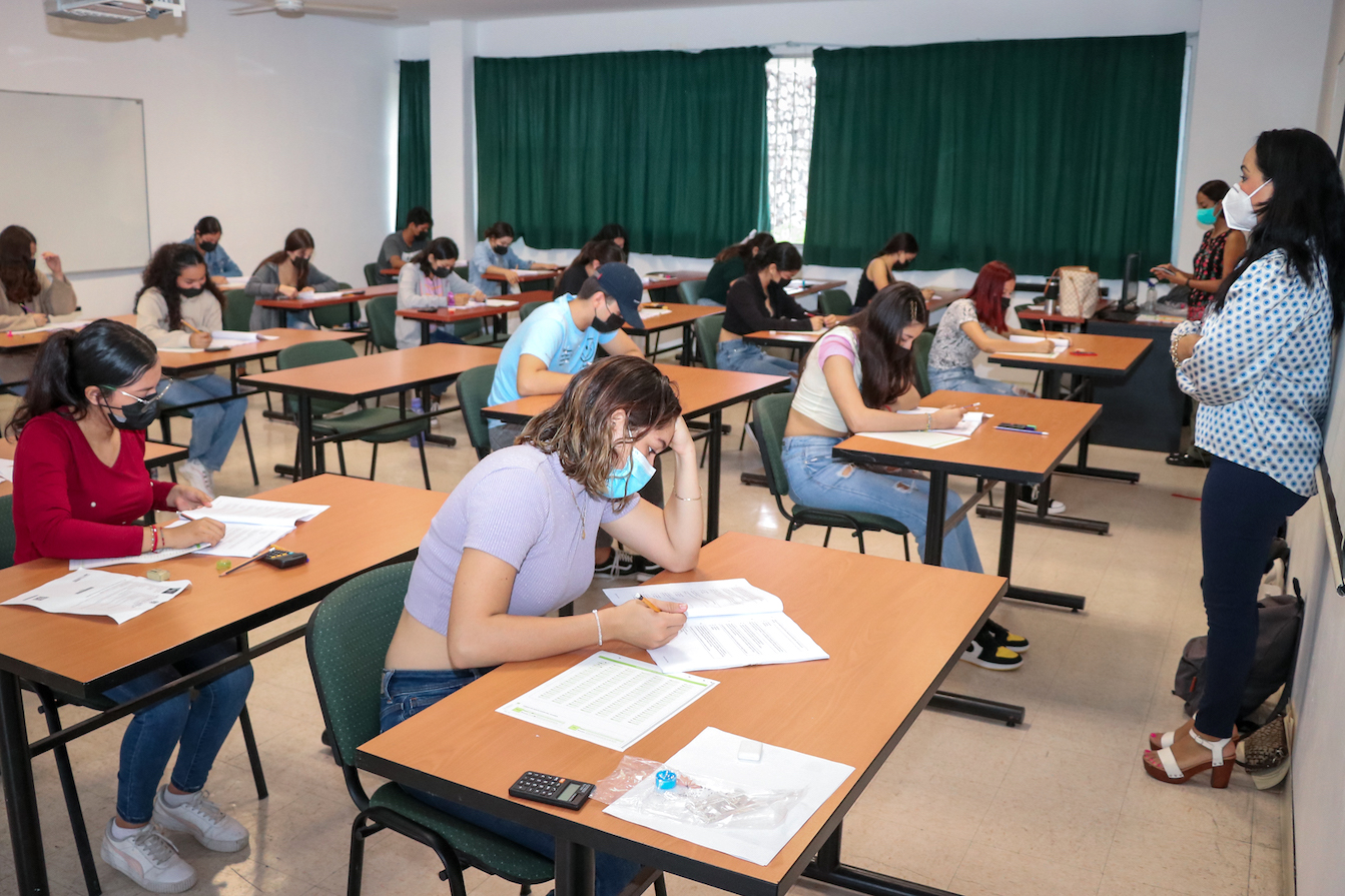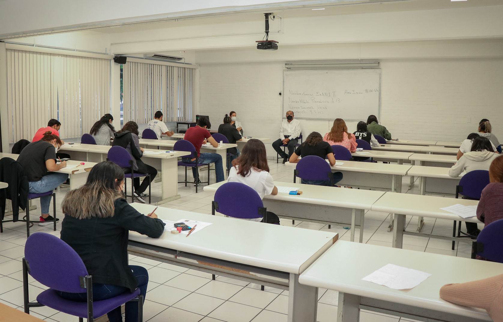 Como el año pasado, la aplicación del examen se dividió en dos días y en cuatro jornadas, para cuidar al máximo la salud de las y los jóvenes, al admitir en cada aula a un grupo reducido de aspirantes.