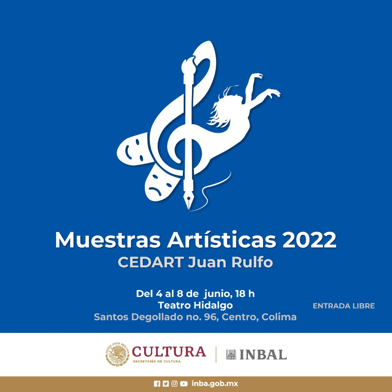 El ciclo escolar esta por terminar y con ello vienen la Muestras Artísticas 2022 que prepara el Centro de Educación Artística conocido como CEDART “Juan Rulfo”. Actividad artística y cultural dirigida toda la comunidad colimense, que en esta ocasión tendrá por escenario principal el majestuoso Teatro Hidalgo, ofreciendo funciones a partir de las 18h todos los días. Eventos gratuitos, posibles gracias a la Subsecretaría de Cultura de Gobierno del Estado.