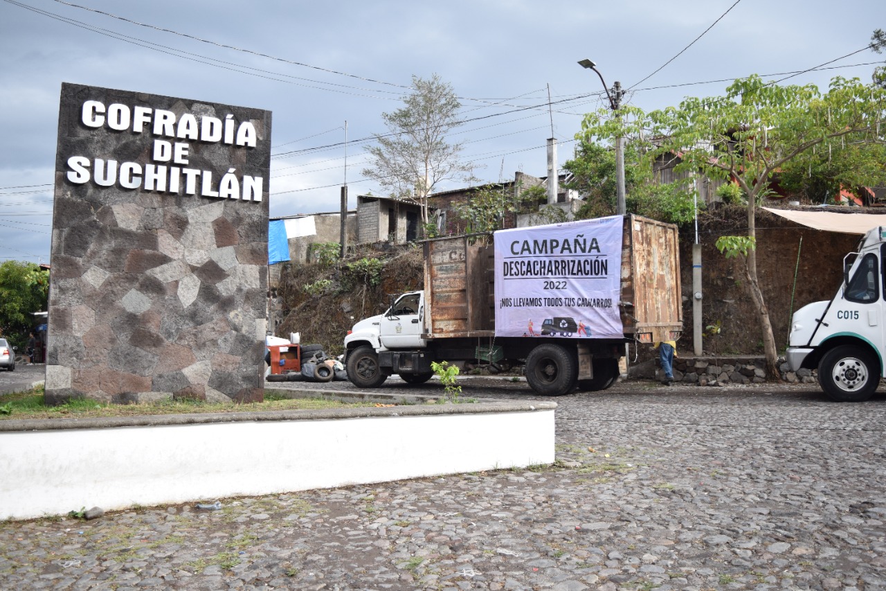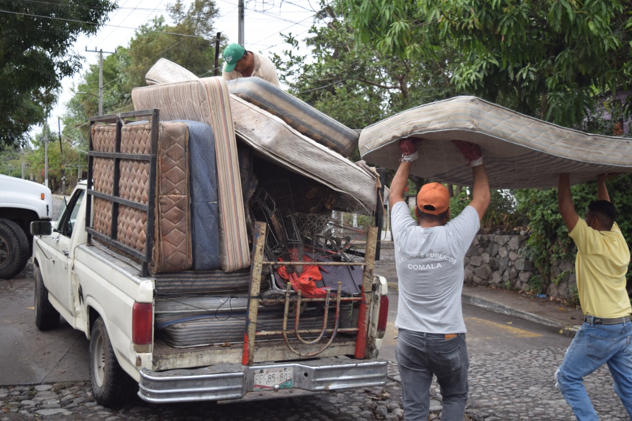 Colonias como La Trinidad, Los Aguajes, Aguajitos, Celsa Virgen, Santa Cecilia, Campo Verde, Cuauhtémoc, Lomas Del Pedregal, Zona Centro, Barrio Alto, Miguel De La Madrid, Francisco Ramírez Villareal y Lázaro Cárdenas en la cabecera municipal y las comunidades de Nogueras, Llanitos, Suchitlán, La Nogalera, Cofradía de Suchitlán, Rancho de Agosto, El Remate, El Remudadero, Los Colomos, La Caja, El Remate, Zacualpan y La Becerrera, fueron recorridas por personal de la Dirección de Servicios Públicos, quiénes realizaron más de un rondín en estas colonias y comunidades, debido a la gran cantidad de cacharros generada, la cual, no podía ser transportada en su totalidad durante una sola visita.