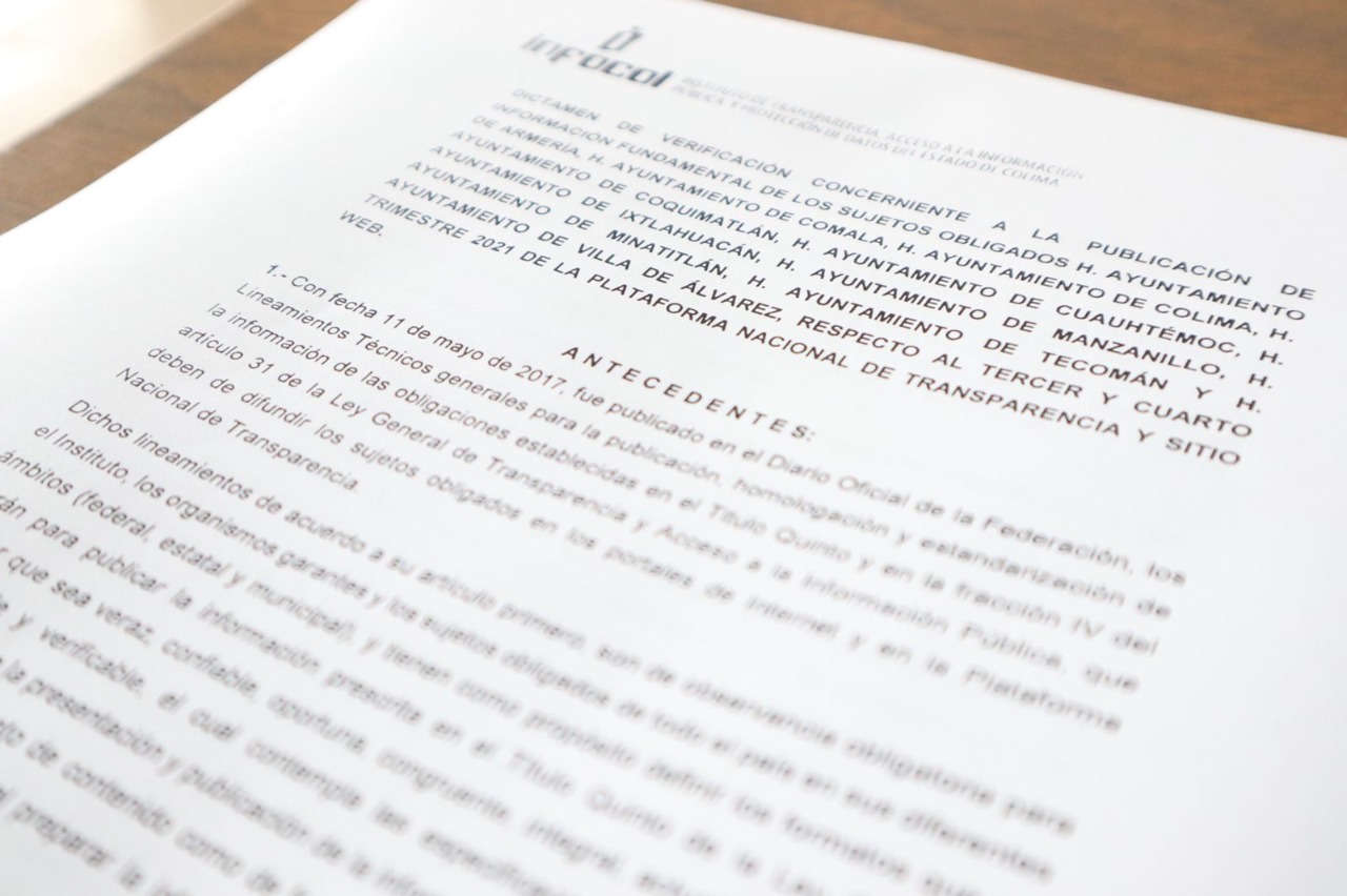 De acuerdo con el último reporte del Instituto de Transparencia, Acceso a la Información Pública y Protección de Datos del Estado de Colima (Infocol), el gobierno que encabeza Gabriela Mejía Martínez, cubrió la totalidad de los rubros contemplados en la verificación correspondiente al tercero y cuarto trimestre del año 2021.