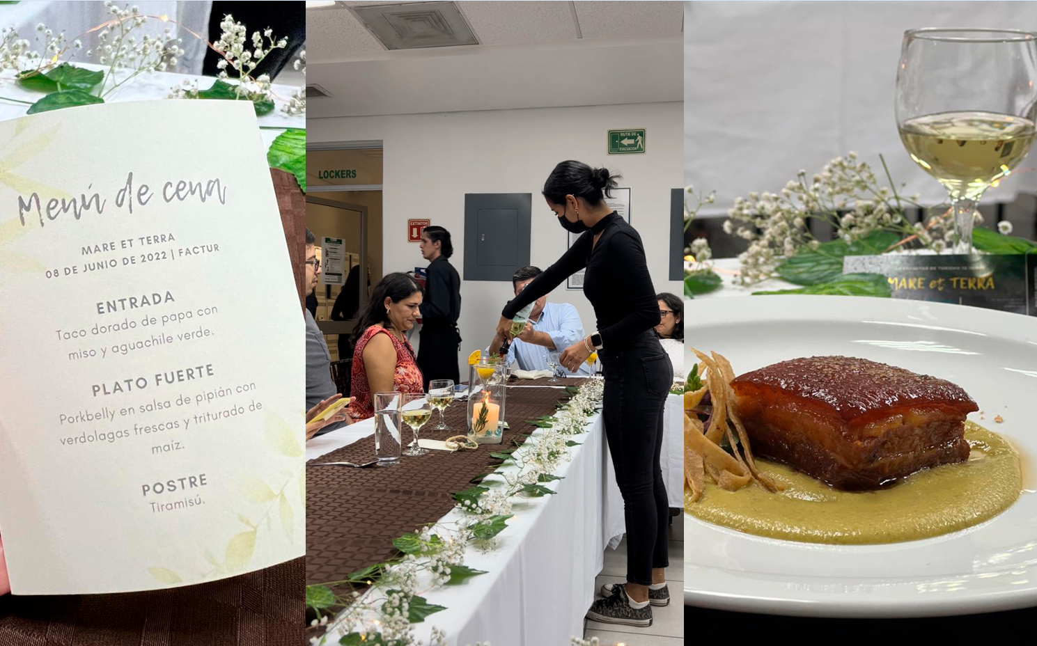 En cuanto a la organización de eventos gastronómicos, prepararon una cata-maridaje que denominaron Mar y tierra, para mostrar sus conocimientos en la materia de gastronomía, que imparten Jesús Solís y Enrique Hernández. Antes, realizaron una investigación y experimentación sobre alimentos, cocteles y vinos viables.