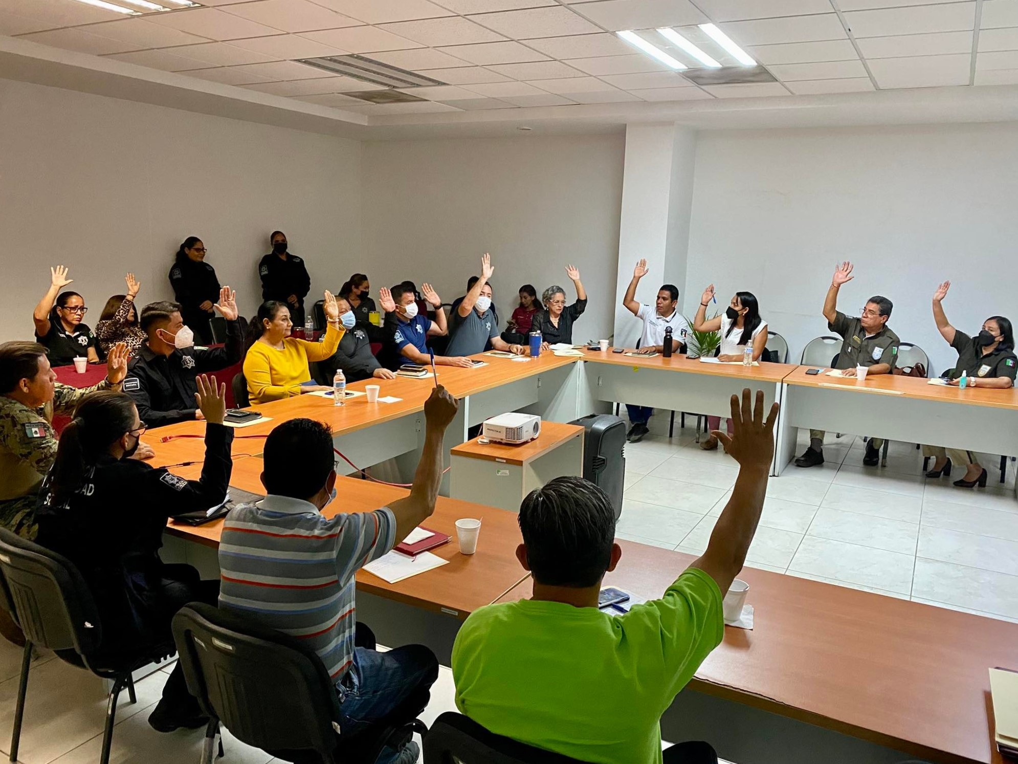 En la reunión del Consejo Estatal, Carmen Galindo directora de Prevención Social del Delito en Manzanillo, junto con su equipo de colaboradoras y colaboradores, expusieron el trabajo que día a día se hace de manera directa con la población, como aspectos psicológicos, capacitaciones para evitar extorsiones, la integración de la Patrulla Juvenil, atención de niñas y niños en riesgo, charlas con padres y madres de familia para evitar que sus hijas e hijos adolescentes pasen por graves etapas de riesgos, entre otros.