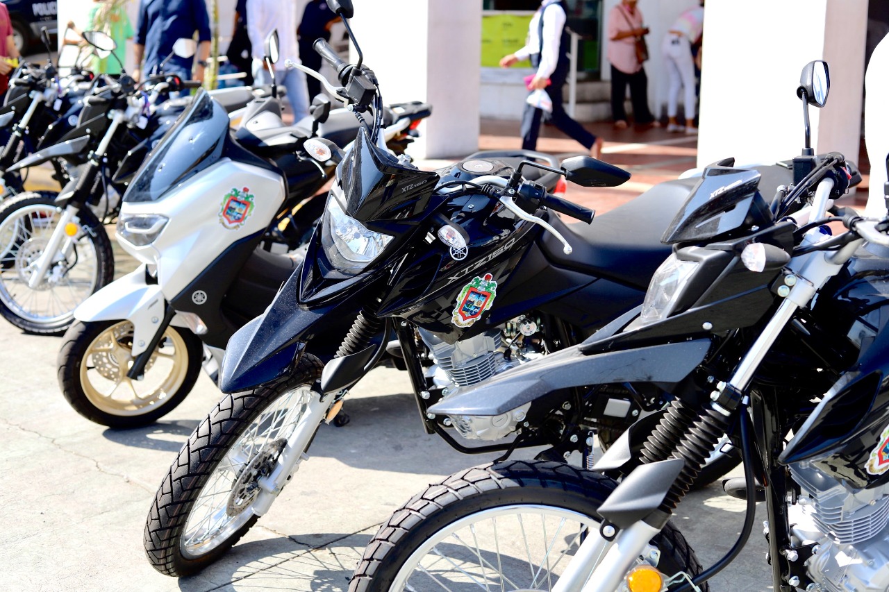 La alcaldesa detalló que 4 de las motocicletas Yamaha de 150 milímetros cúbicos de transmisión manual tuvieron un costo de 64 mil 679 pesos cada una y otra más de la misma marca pero eléctrica y de transmisión automática tuvo un valor de 87 mil 219 pesos, lo cual hace una inversión total de 345 mil 935 pesos, recurso obtenido por el pago de los impuestos de las y los manzanillenses, a quienes felicitó por el cumplimiento de sus obligaciones fiscales.