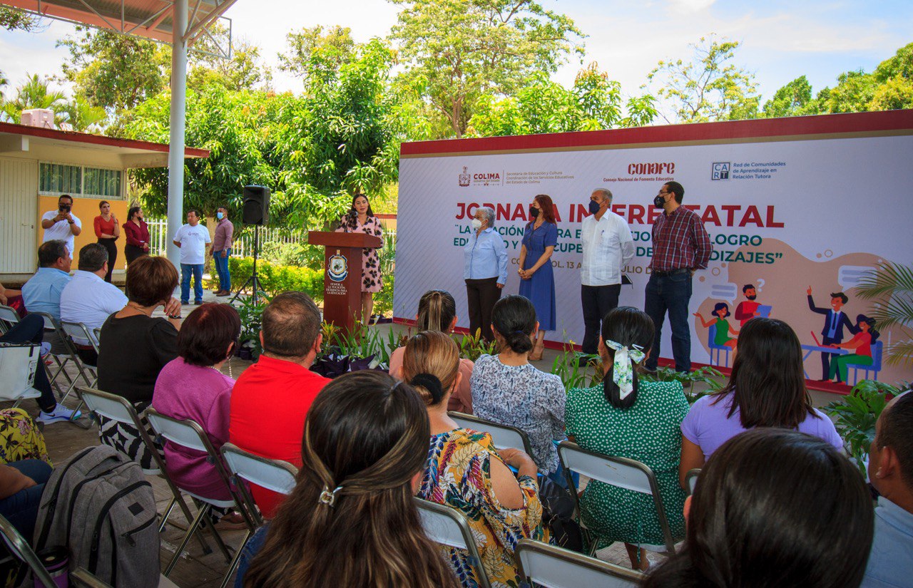 Este viernes, la gobernadora Indira Vizcaíno Silva clausuró la jornada inter-estatal “La relación tutora en la mejora del logro educativo y la recuperación de aprendizajes”, que se realizó en Colima, con participación de representantes de diversas entidades de la República Mexicana, y que tuvo como anfitriones al secretario de Educación y Cultura, Adolfo Núñez González, y María del Rosario Silva, subsecretaria de Educación y directora General de los Servicios Educativos.