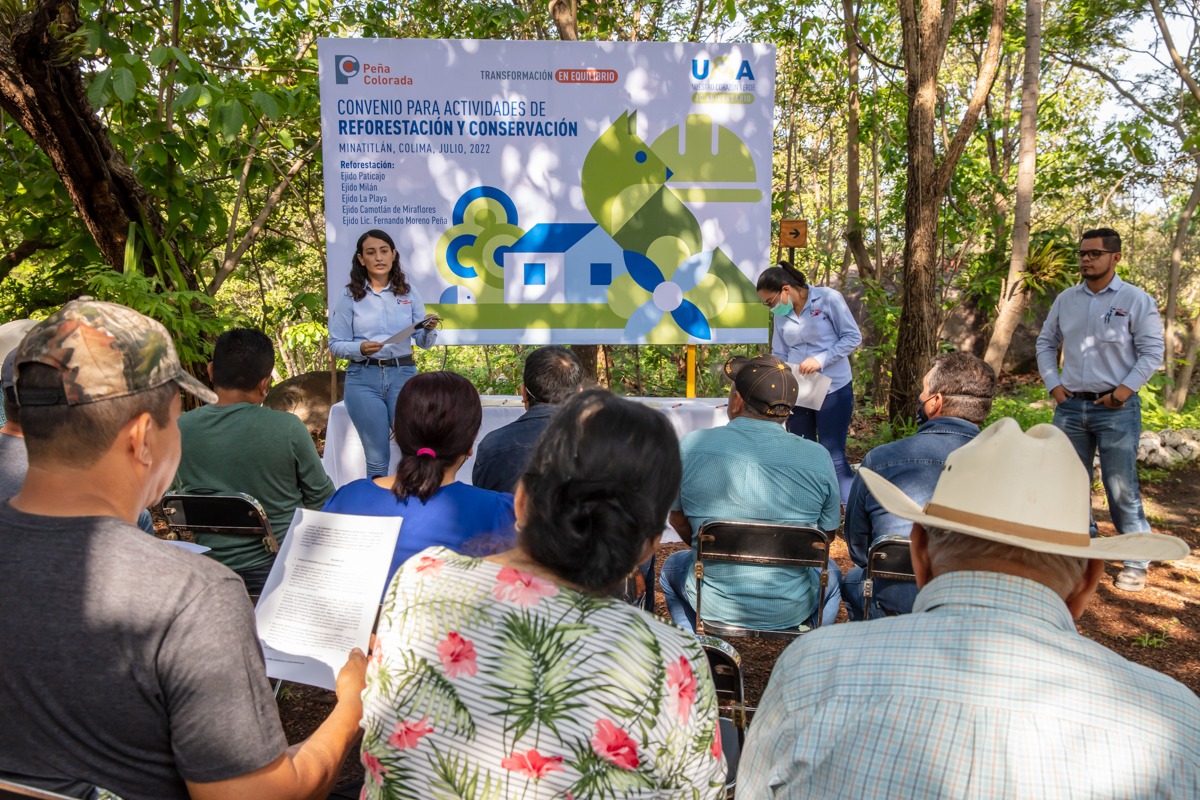 Peña Colorada firmó con diez ejidatarios de los municipios de Minatitlán y Manzanillo, convenios de colaboración para realizar actividades de reforestación y conservación en aproximadamente 50 hectáreas de terreno, iniciando así una nueva etapa en las estrategias ambientales de la empresa, con mayor compromiso social y participación de la comunidad.