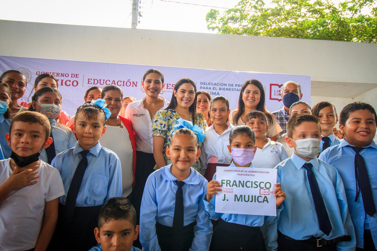 La tarde de este martes, la titular del Poder Ejecutivo estatal, Indira Vizcaíno Silva, participó en los operativos de entrega de tarjetas bancarias del programa federal ‘La Escuela es Nuestra’, a seis Comités Escolares de Administración Participativa de planteles de Tecomán y diez del municipio de Armería, organizados por la Delegación de Programas para el Bienestar del Gobierno de México.
