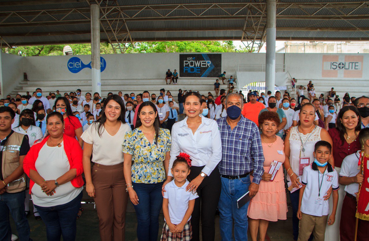 Indira participa en entrega de tarjetas del programa ‘La Escuela es Nuestra’ a planteles de Tecomán y Armería