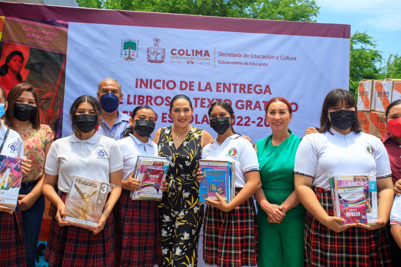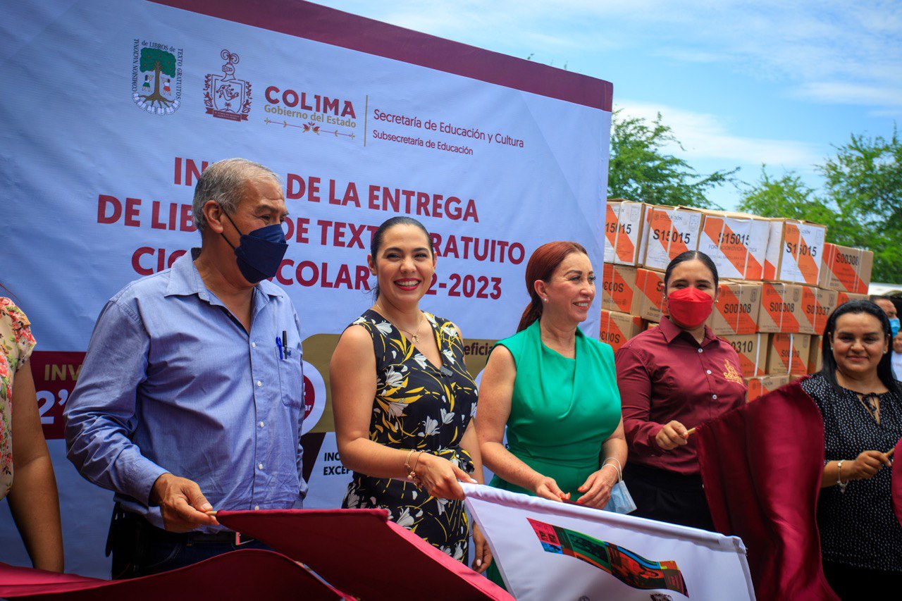 La gobernadora Indira Vizcaíno Silva presidió en Villa de Álvarez el inicio de la entrega de libros de texto gratuitos del ciclo escolar 2022-2023, donde destacó que su administración contribuye a la educación de nuestras niñas, niños, adolescentes y jóvenes, a través de los programas ColiBecas y ColiRed que su gobierno ha implementado, y se complementa con estos libros de texto que aporta el gobierno federal.