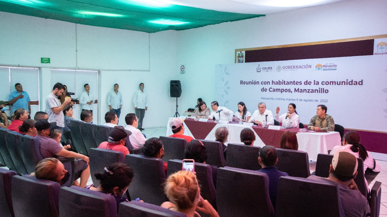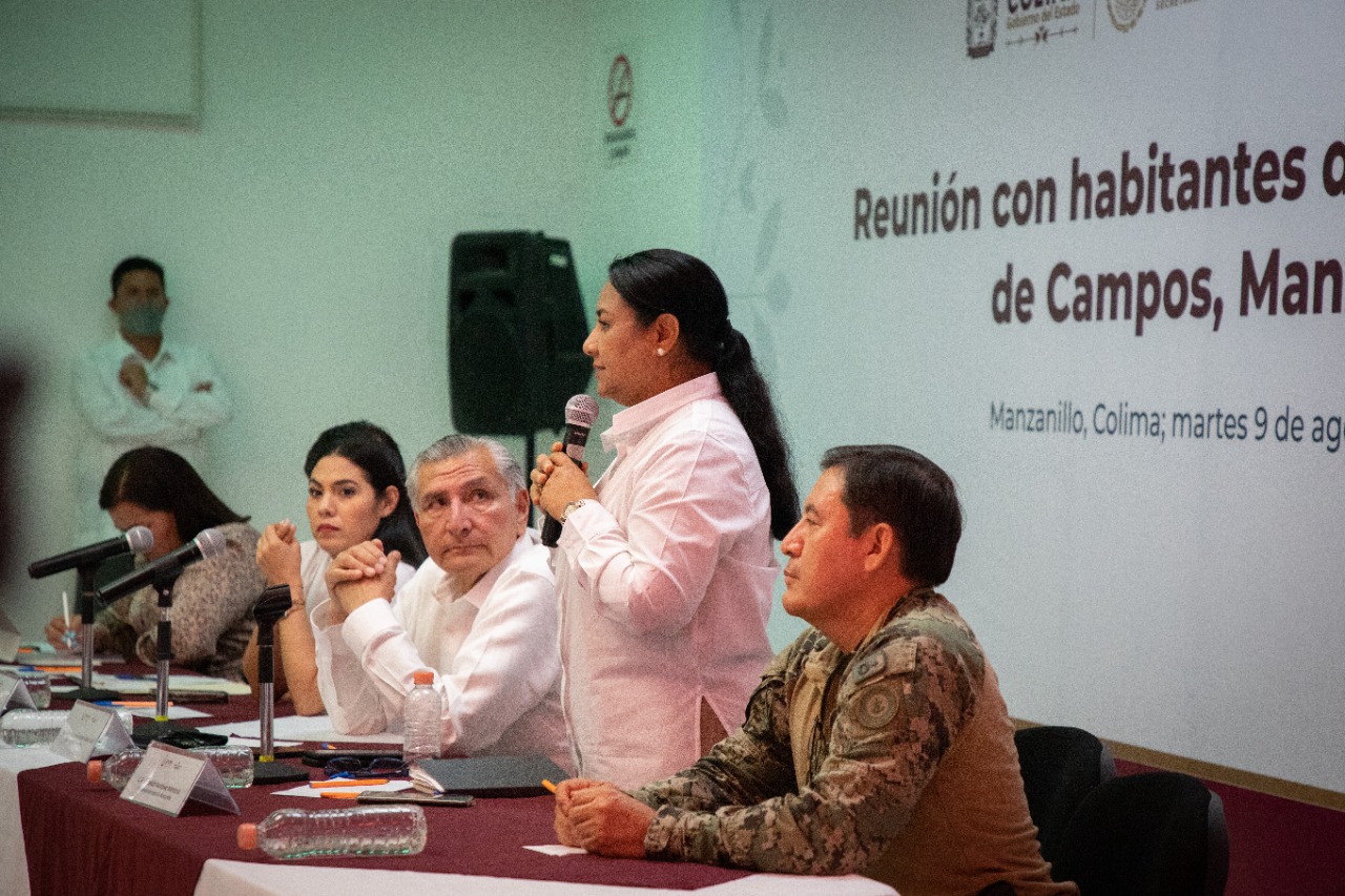 Acompañado por la Presidenta Municipal de Manzanillo, Griselda Martínez, la Gobernadora del Estado, Indira Vizcaíno, además de otras autoridades estatales y federales, el Secretario de Gobernación, Adán Augusto López Hernández, se reunió con las familias que fueron desalojadas en Campos; luego de escuchar sus planteamientos, ofreció a los afectados trabajar en la posibilidad de brindarles apoyo para un pie de casa por parte del Gobierno de la República, en el terreno que propone la alcaldesa de Manzanillo, acordado con las familias.