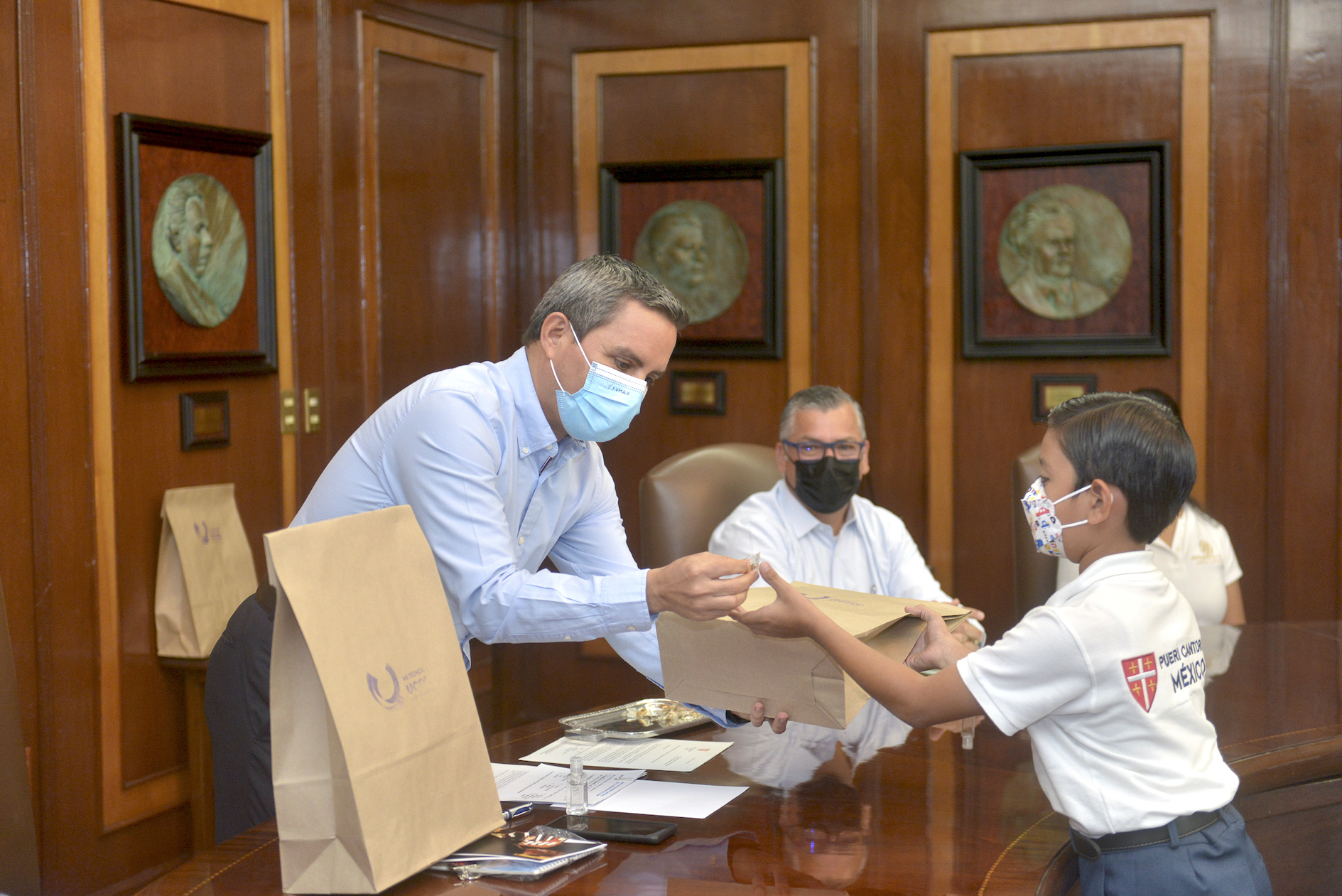 En la visita al rector también estuvieron presentes Joel Niño, Secretario General, así como los padres de familia, quienes entregaron un presente al rector. Finalmente, el rector entregó regalos y un pin o fistol de la Universidad a los pequeños que participaron en el congreso internacional.