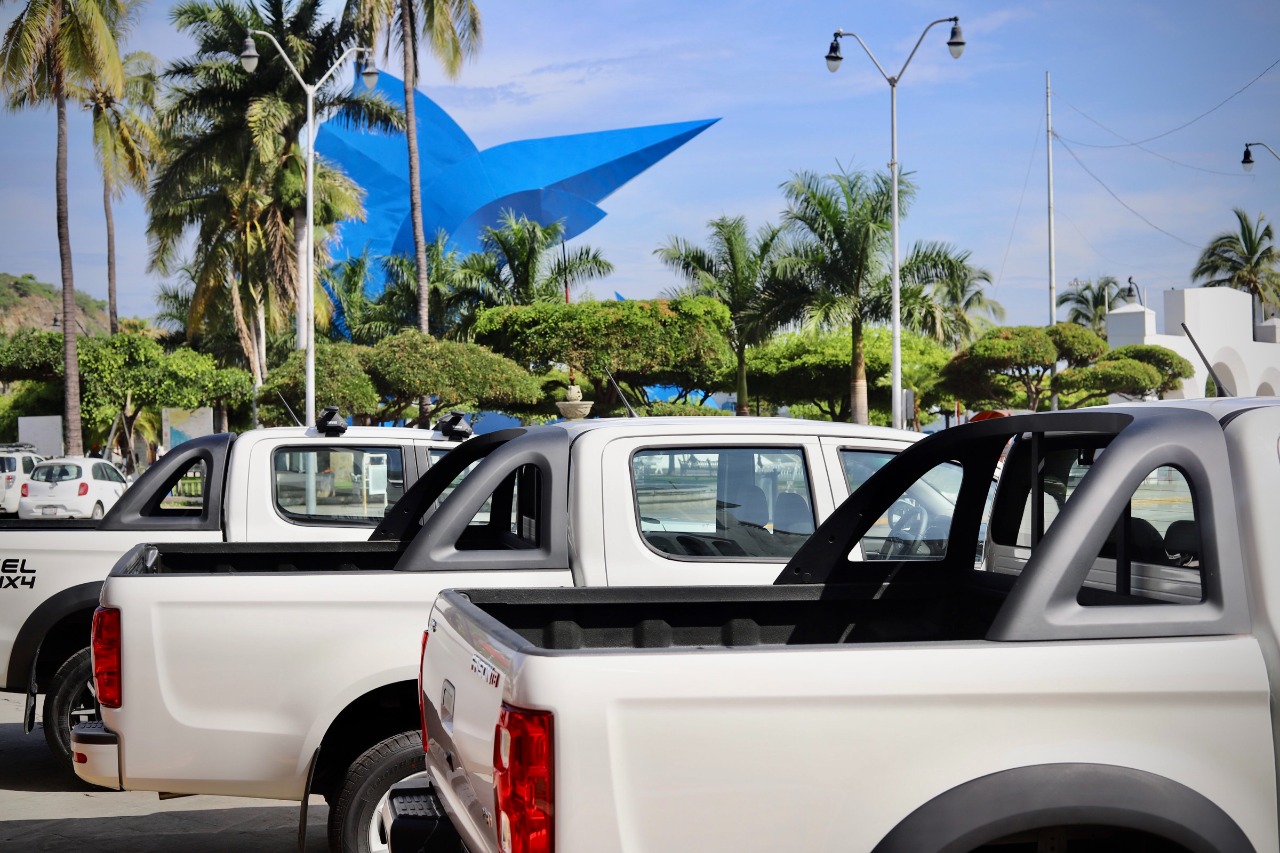 Para hacer más eficientes los servicios que presta el Ayuntamiento de Manzanillo a las y los manzanillenses, la presidenta Griselda Martínez hizo entrega de 3 camionetas pick up para el DIF Municipal y para las direcciones de Desarrollo Económico y Turístico, y para la de Sistemas Computacionales; las cuales tuvieron una inversión de 1 millón 495 mil 403 pesos.