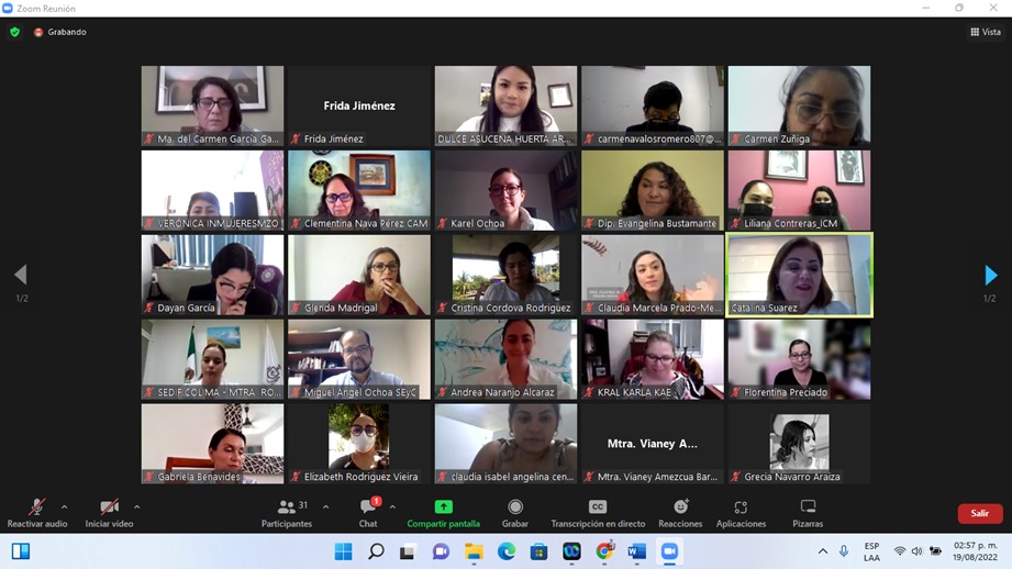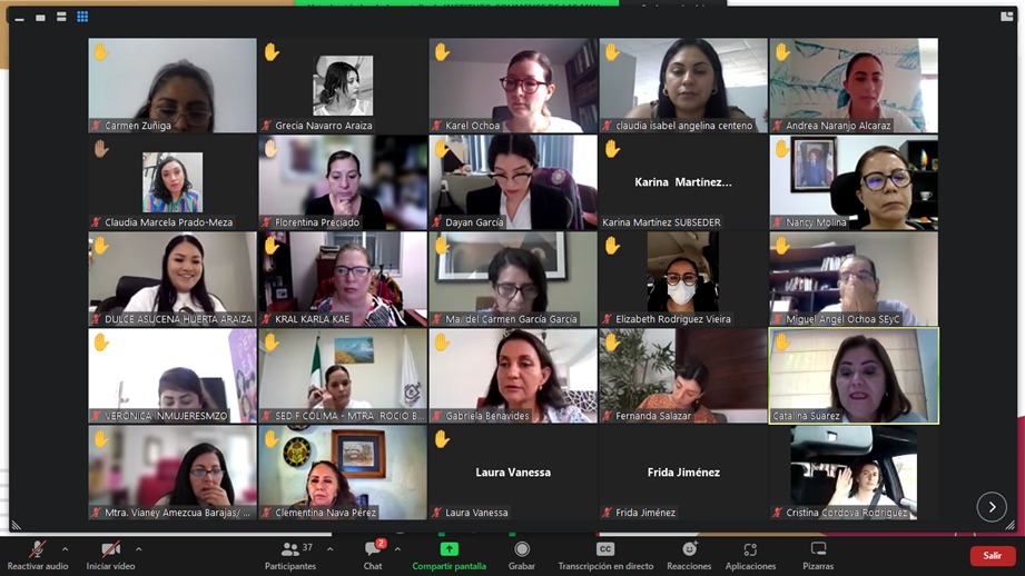 En la reunión en línea participaron las secretarias de Bienestar, Inclusión Social y Mujeres, Dulce Huerta Araiza y de Planeación, Finanzas y Administración, Fabiola Verduzco Aparicio; las presidentas municipales de Armería, Diana Zepeda Figueroa, de Cuauhtémoc, Gabriela Mejía Martínez y de Manzanillo, Griselda Martínez Martínez; las diputadas locales Fernanda Salazar Martínez, Isamar Ramírez Rodríguez, Andrea Naranjo Alcaraz, Sandra Ceballos Polanco y Evangelina Bustamante Morales; las legisladoras federales María del Carmen Zúñiga Cuevas y Gabriela Benavides Cobos, así como 13 de las 15 consejeras honorarias del ICM, integrantes de la sociedad civil.