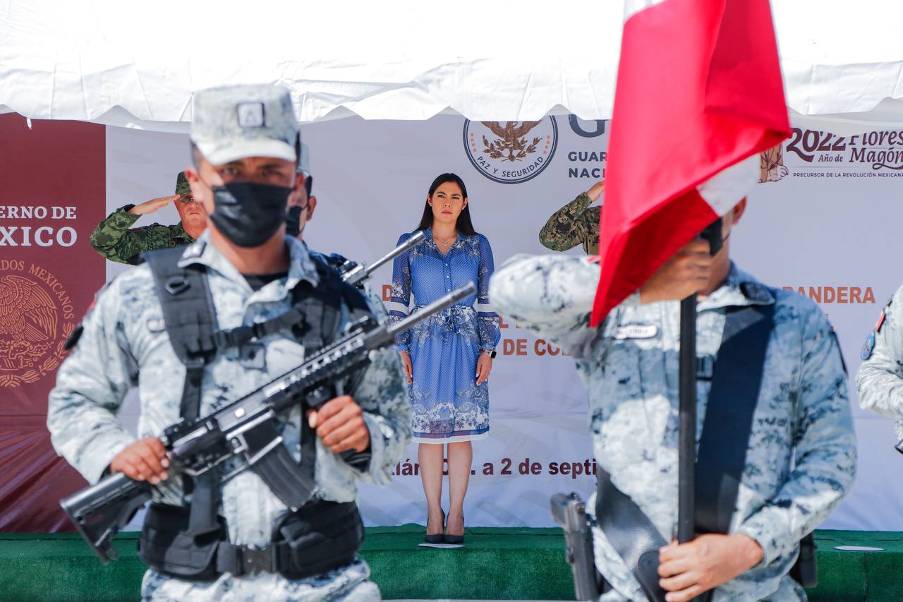 La mandataria estatal estuvo acompañada por el general de brigada Diplomado de Estado Mayor, Hernán Cortés Hernández, comandante de la Vigésima Zona Militar; el comisario general Rogelio Terán Contreras, representante del comandante de la GN y el contralmirante infante de Marina Diplomado de Estado Mayor, Arnulfo González Mireles, en representación de la Décima Región Naval.