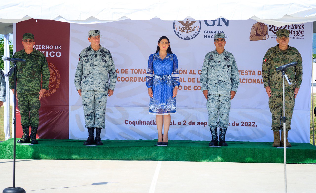 La gobernadora del estado de Colima, Indira Vizcaíno Silva, constató este viernes la toma de protesta que se le realizó a Miguel Ángel Aragón Vázquez, como nuevo coordinador estatal de la Guardia Nacional (GN) en la entidad.