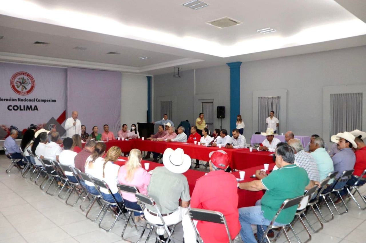 Delegada en funciones de Presidenta de la CNC estatal, Mtra. Mely Romero Celis; Secretario General, diputado Miguel Ángel Galindo Barragán; Gilberto Manzo Sánchez, presidente de la Confederación Nacional Agronómica Colima; Secretaria de Organización, Blanca Esthela Acevedo Gómez.
